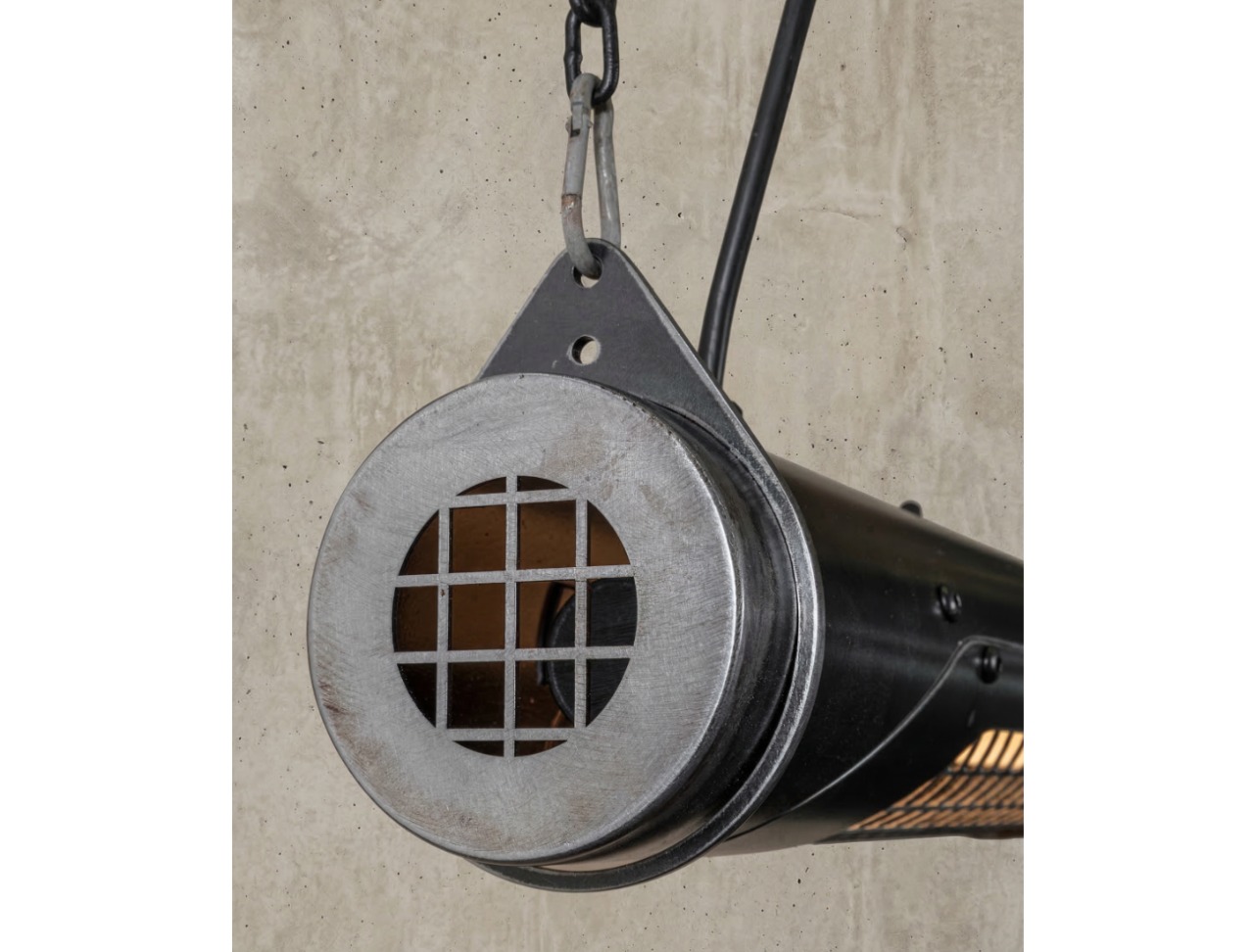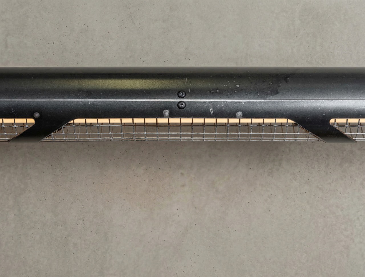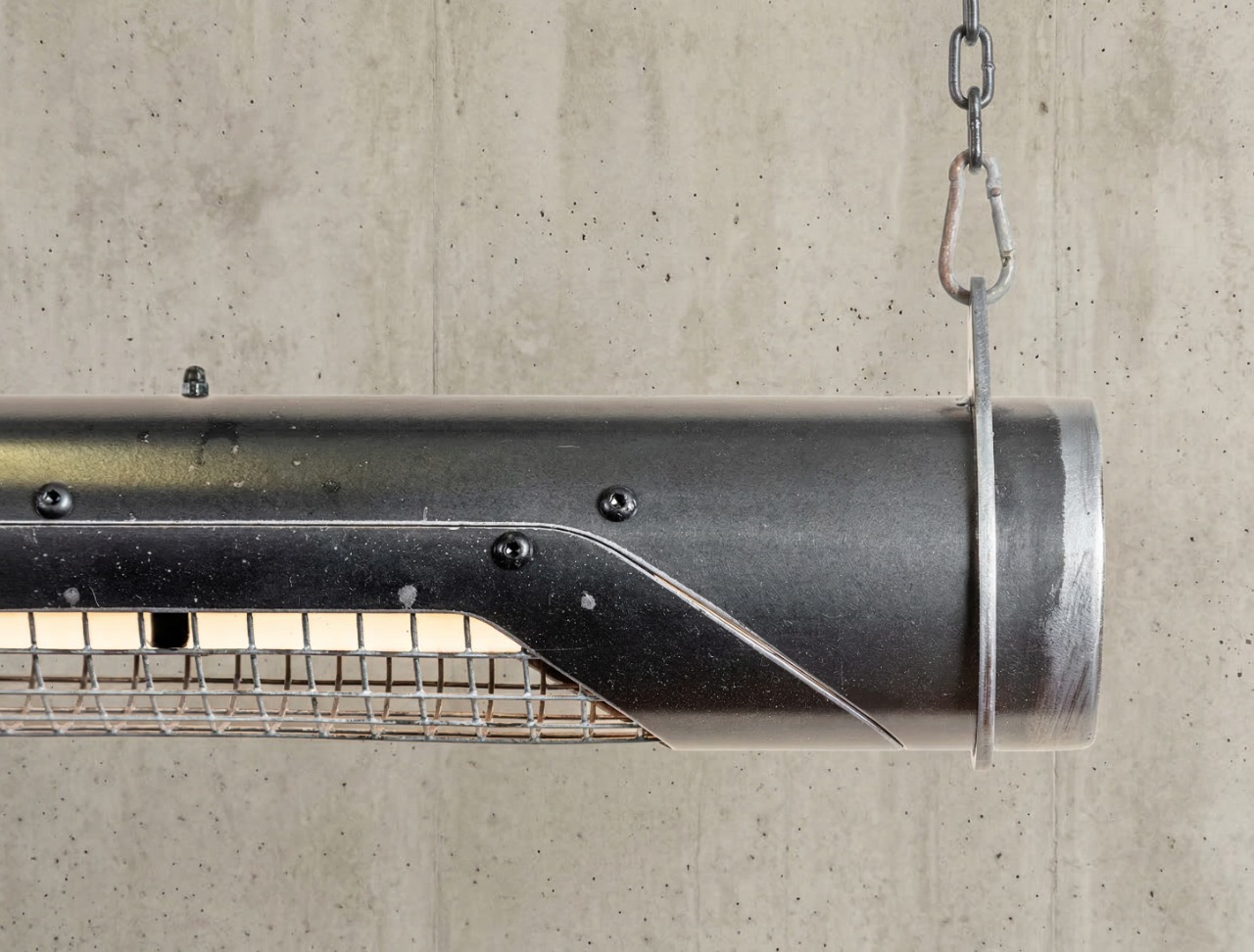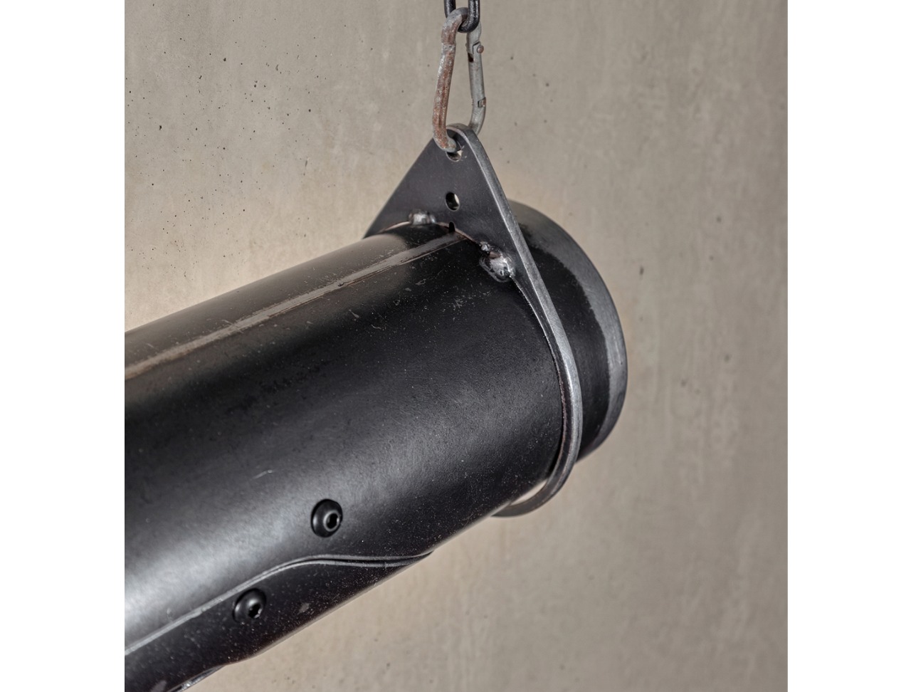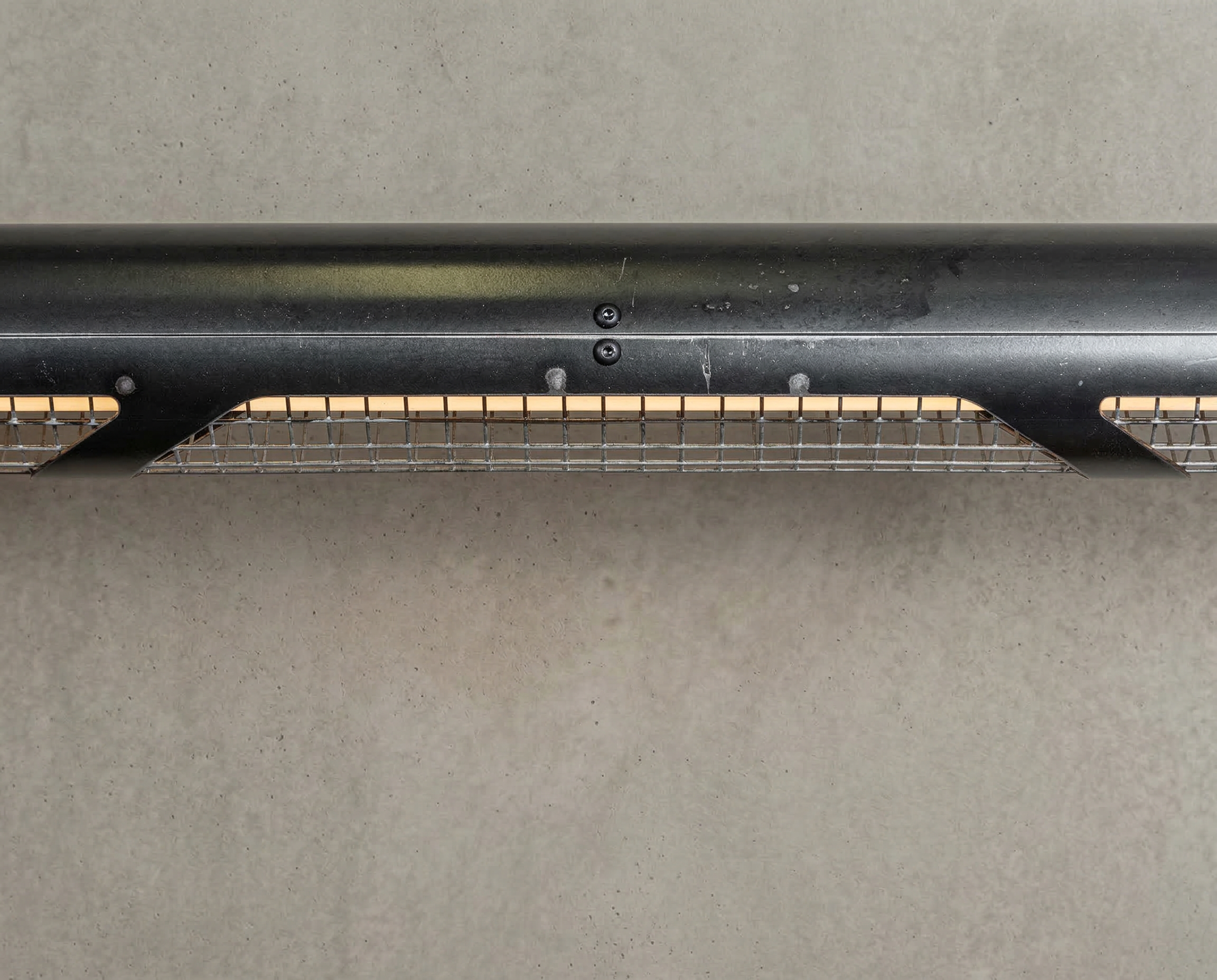Metro feels like a piece of infrastructure made intimate: a long, calm cylinder, framed by cutout windows and a woven iron grill. The end caps close it like a sealed artifact, while the hangers read as honest hardware—simple, tough, and quietly specific. In Natural finish, the surface stays unedited: scratches, stains, and rubbed edges become the texture of time, turning the object into something you don’t just see—you feel.
