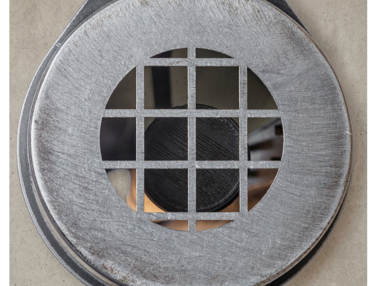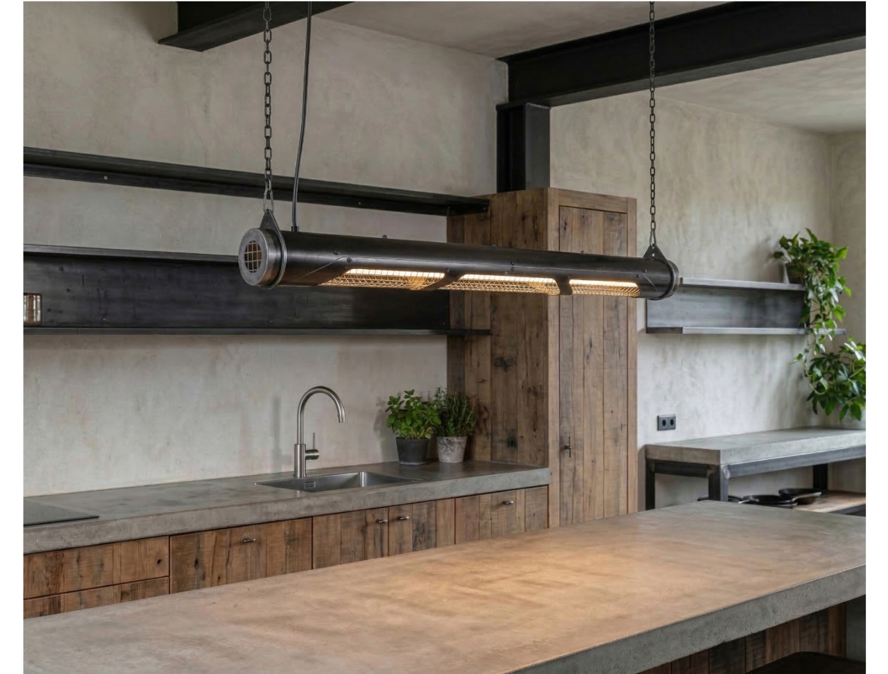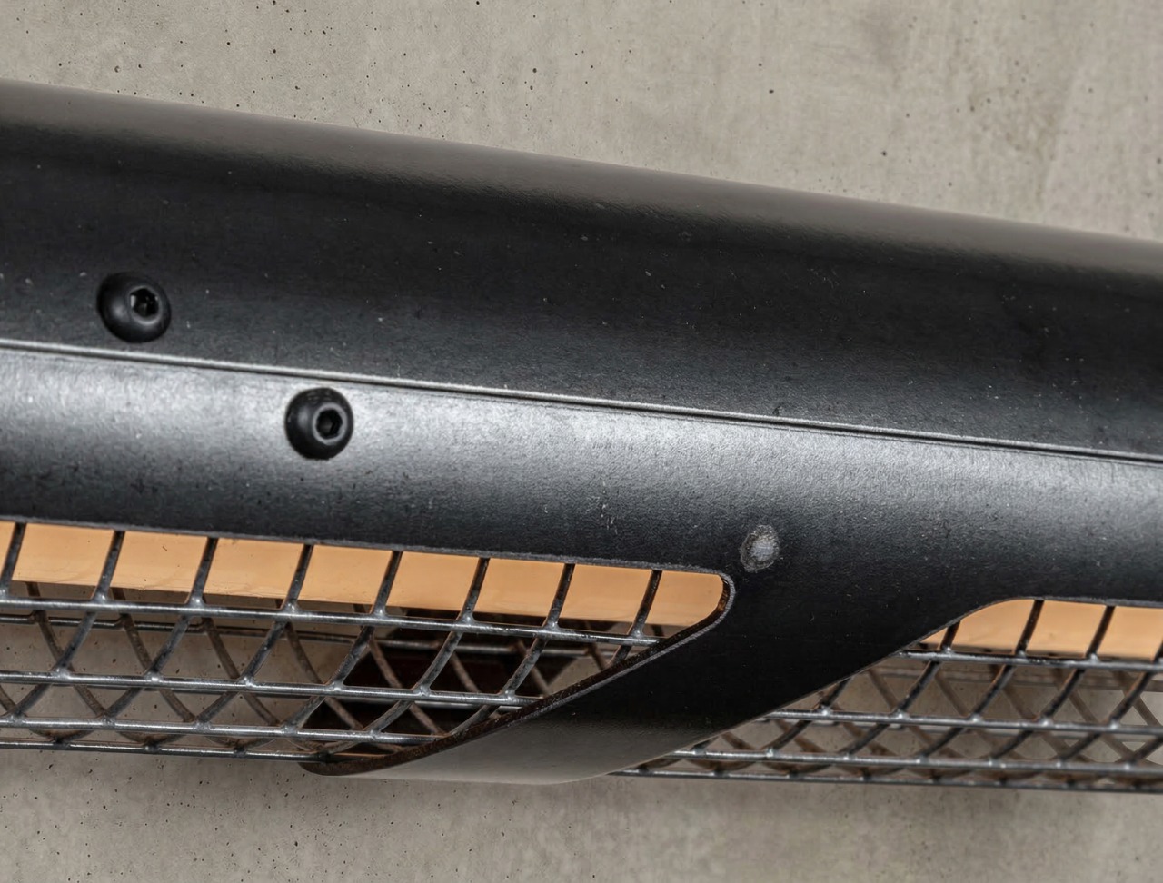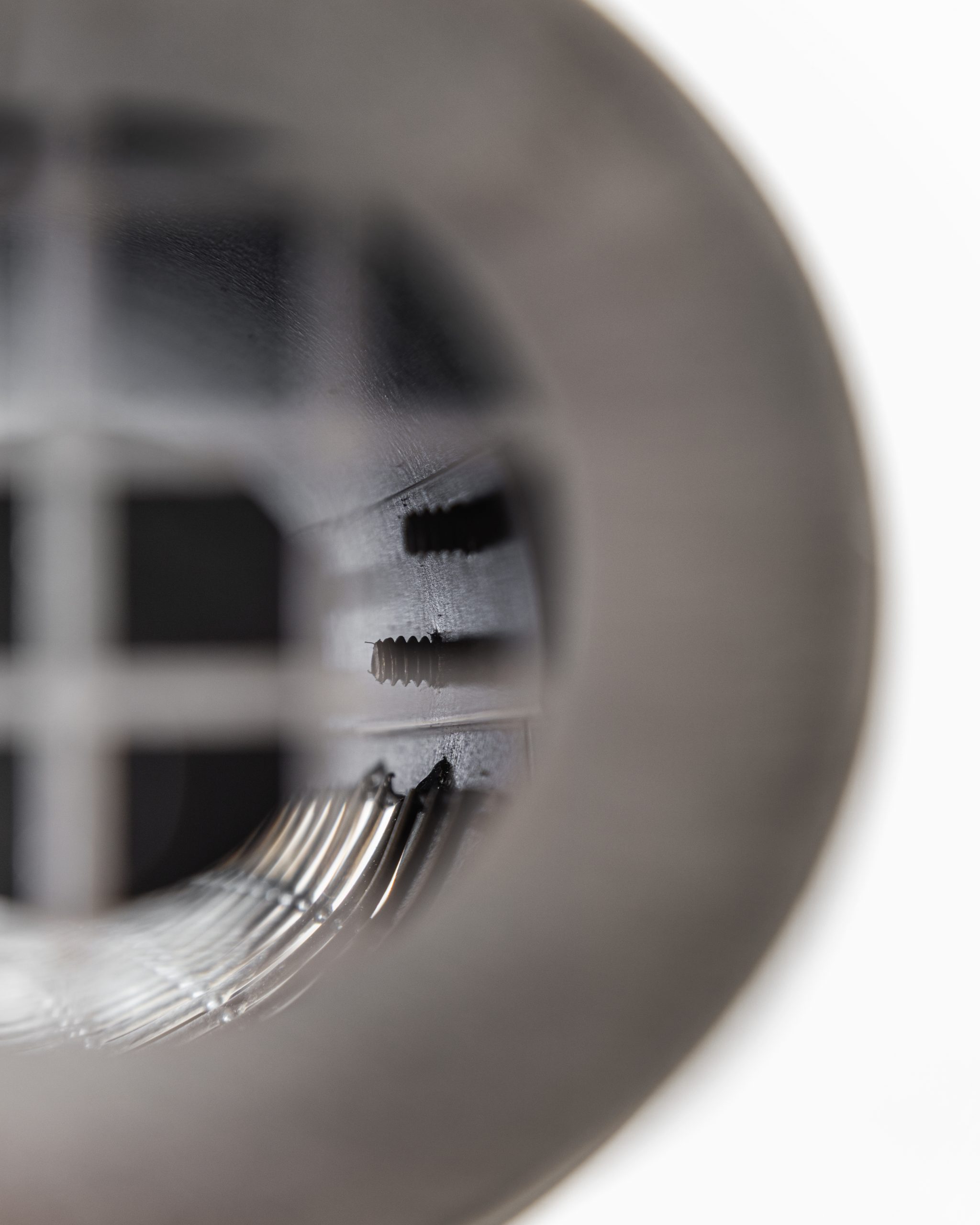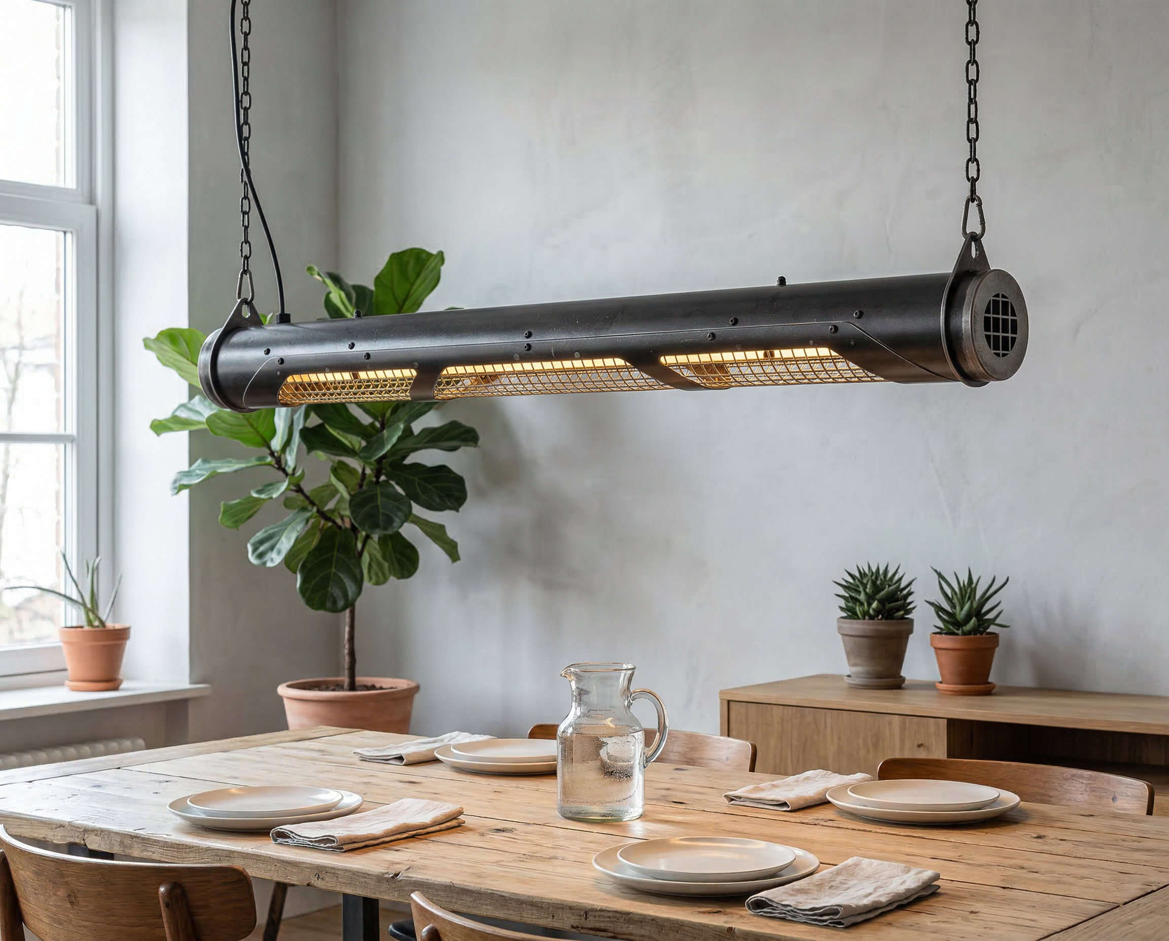 Metro feels like a piece of infrastructure made intimate: a long, calm cylinder, framed by cutout windows and a woven iron grill. The end caps close it like a sealed artifact, while the hangers read as honest hardware—simple, tough, and quietly specific. In Natural finish, the surface stays unedited: scratches, stains, and rubbed edges become the texture of time, turning the object into something you don’t just see—you feel.