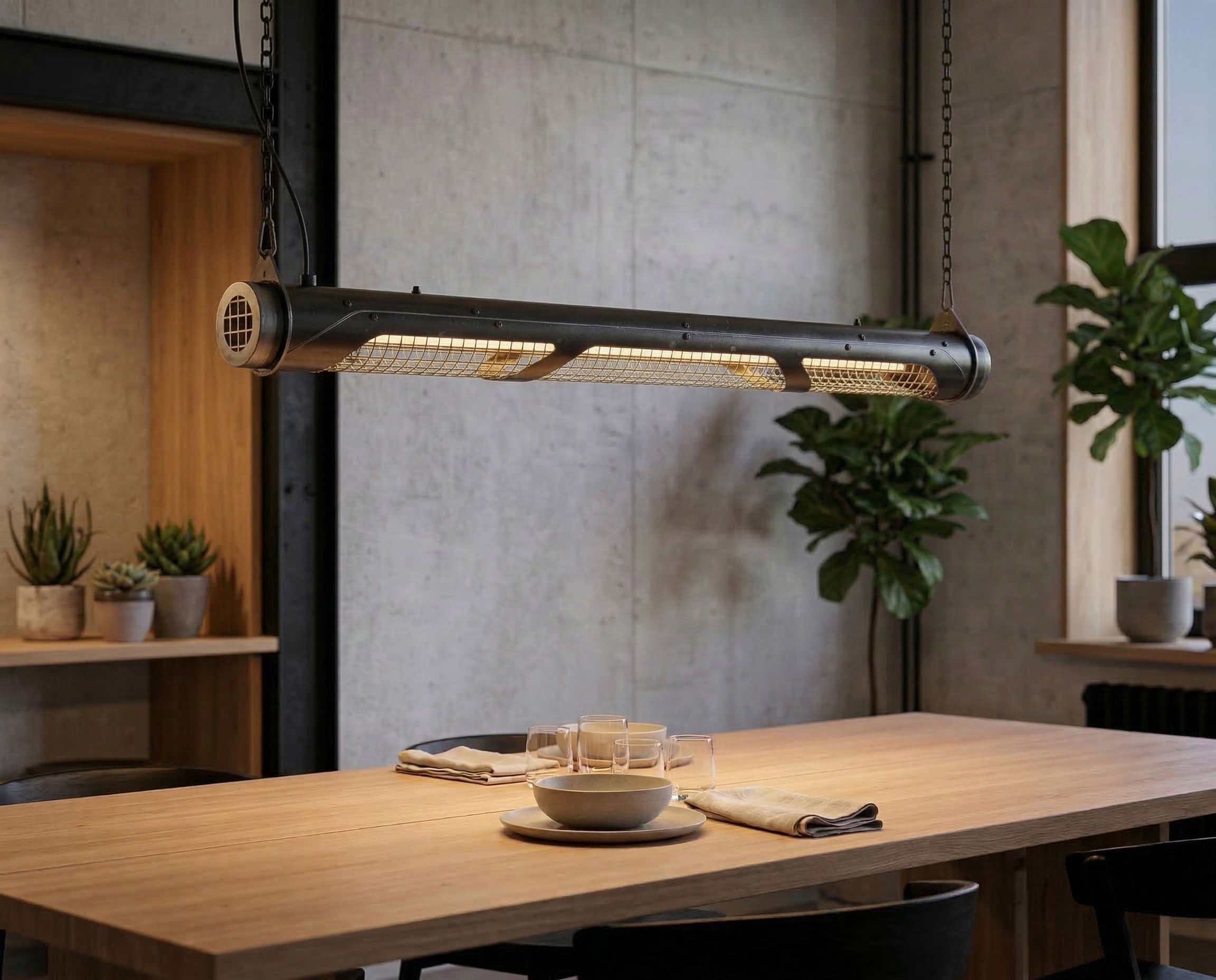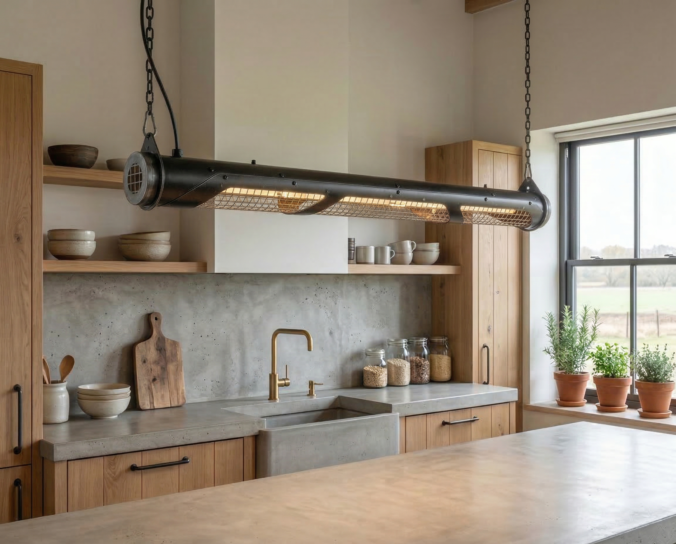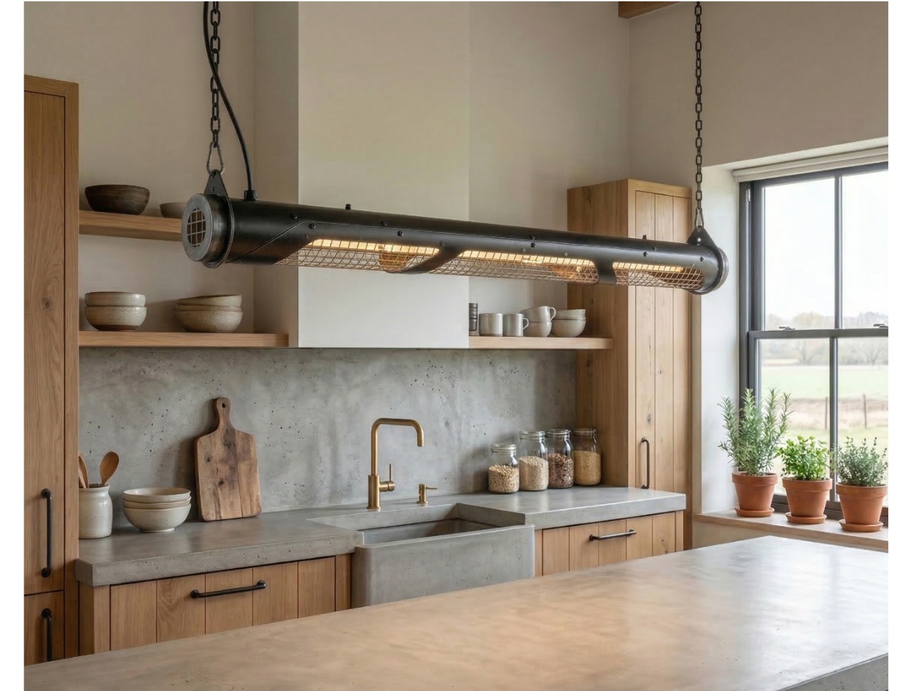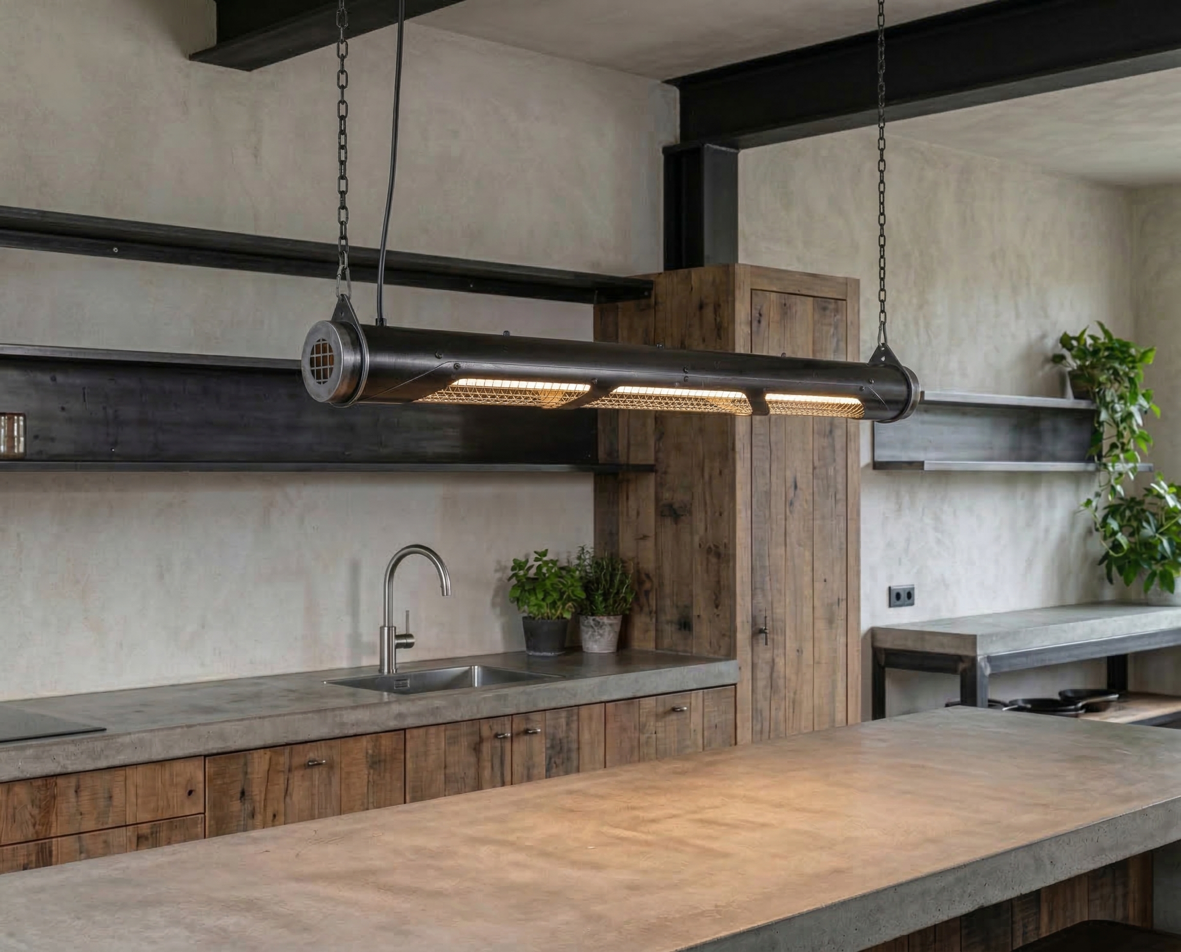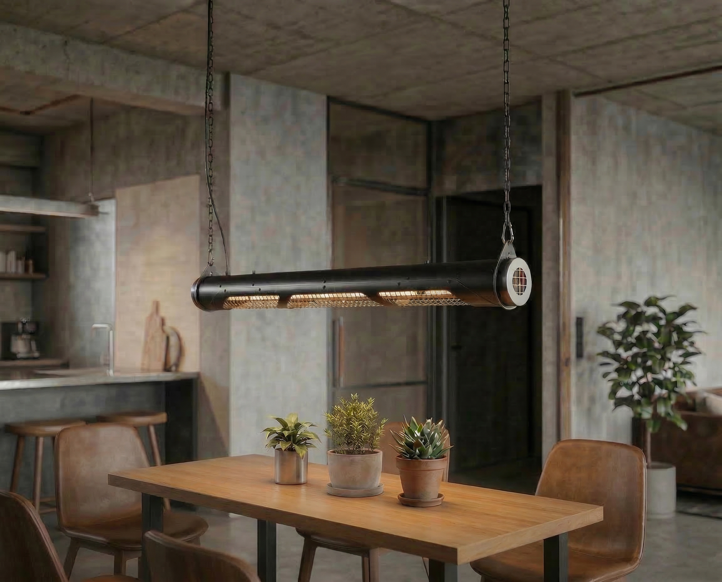 Metro feels like a piece of infrastructure made intimate: a long, calm cylinder, framed by cutout windows and a woven iron grill. The end caps close it like a sealed artifact, while the hangers read as honest hardware—simple, tough, and quietly specific. In Natural finish, the surface stays unedited: scratches, stains, and rubbed edges become the texture of time, turning the object into something you don’t just see—you feel.