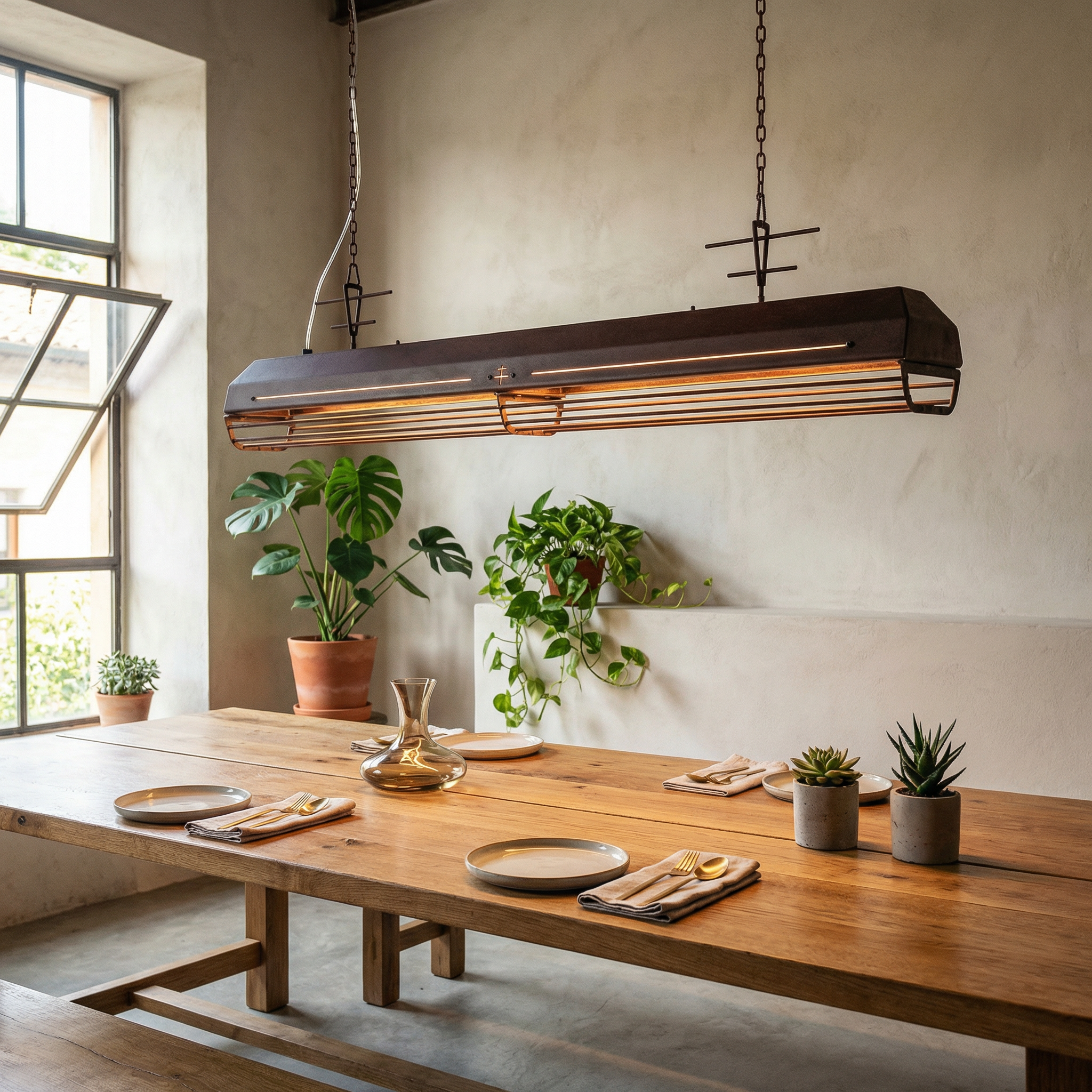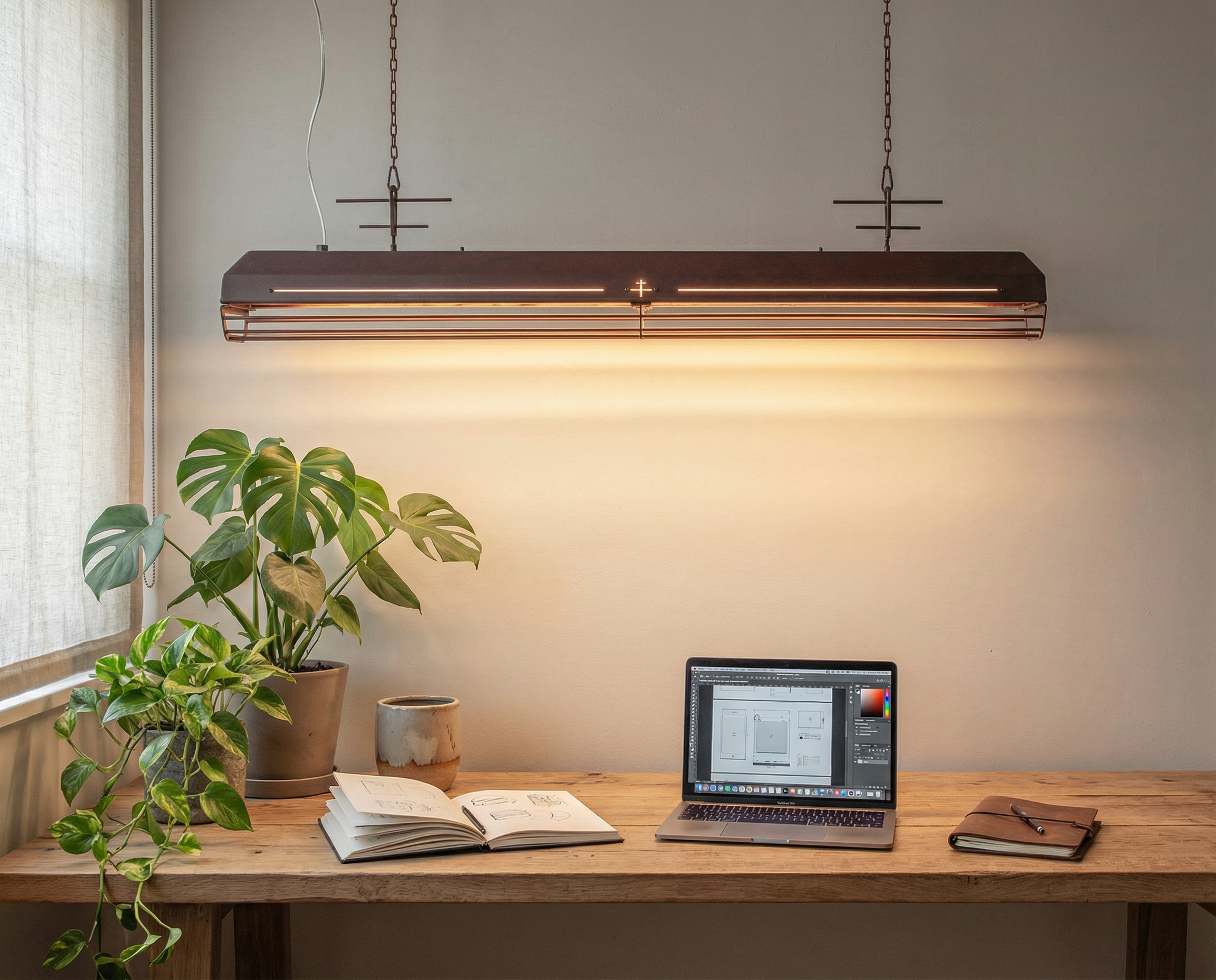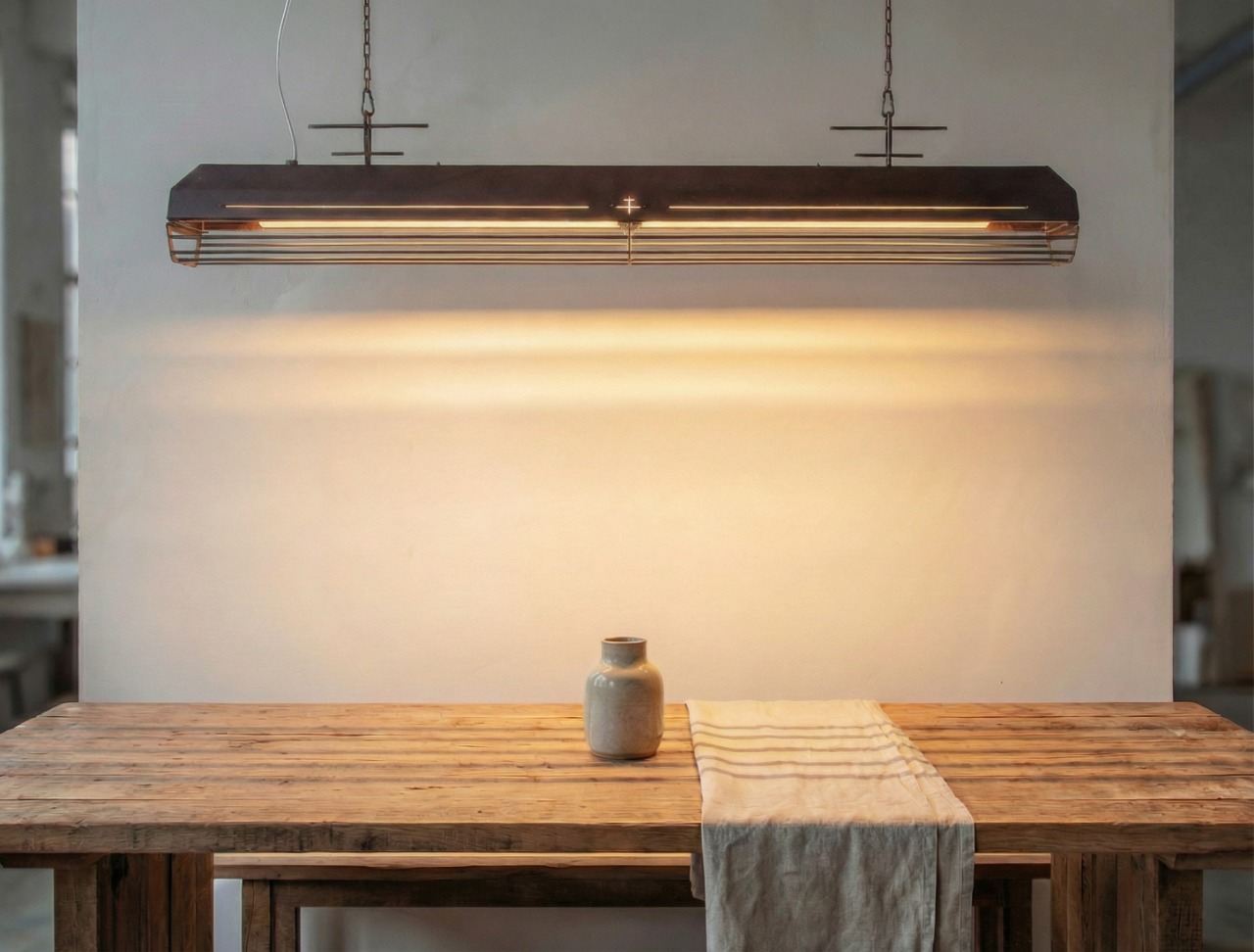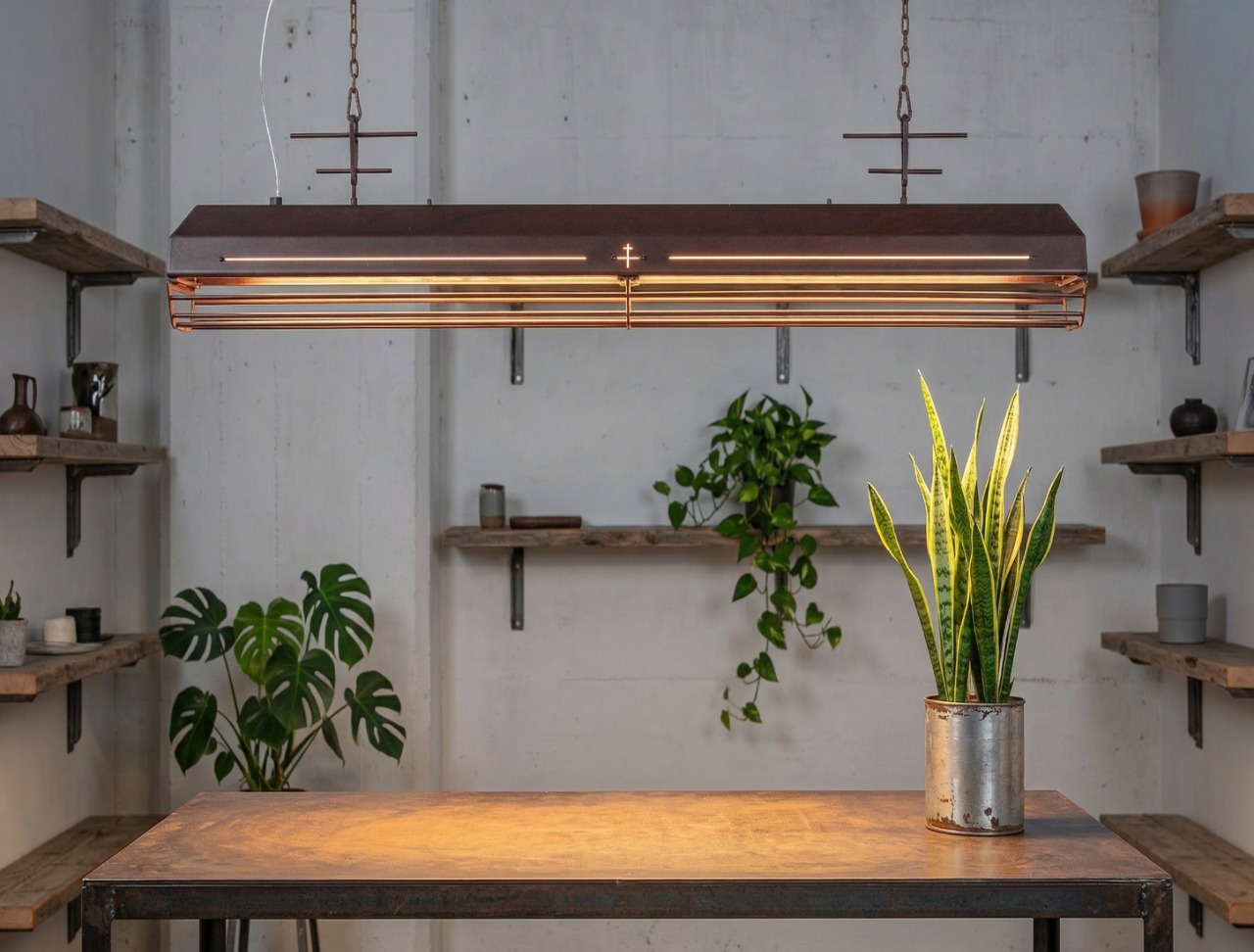 A nostalgic industrial form, held by its own distinctive hangers—like hardware turned into jewelry. Wild rust settles into the steel in smoky gradients and drifting stains, letting time become part of the surface. A fine crack runs through the composition like a deliberate seam, a quiet interruption that makes the geometry breathe. Below, the grill repeats in a steady rhythm—shadow, texture, and a tactile sense of weight. Each piece carries a singular trace of process and oxidation: rough, warm, and alive.