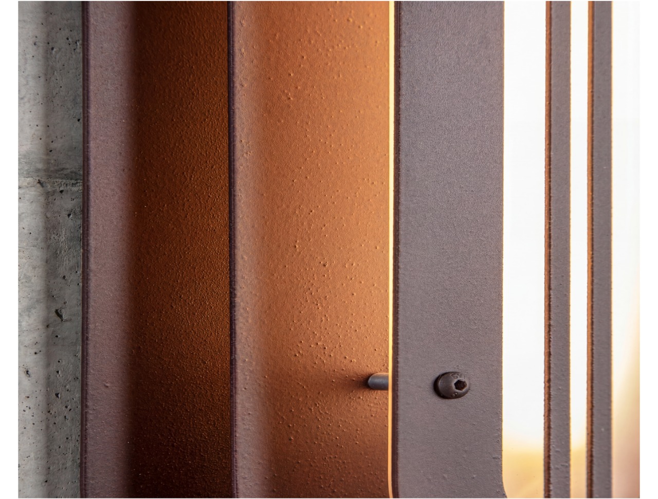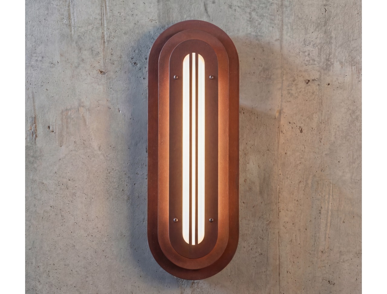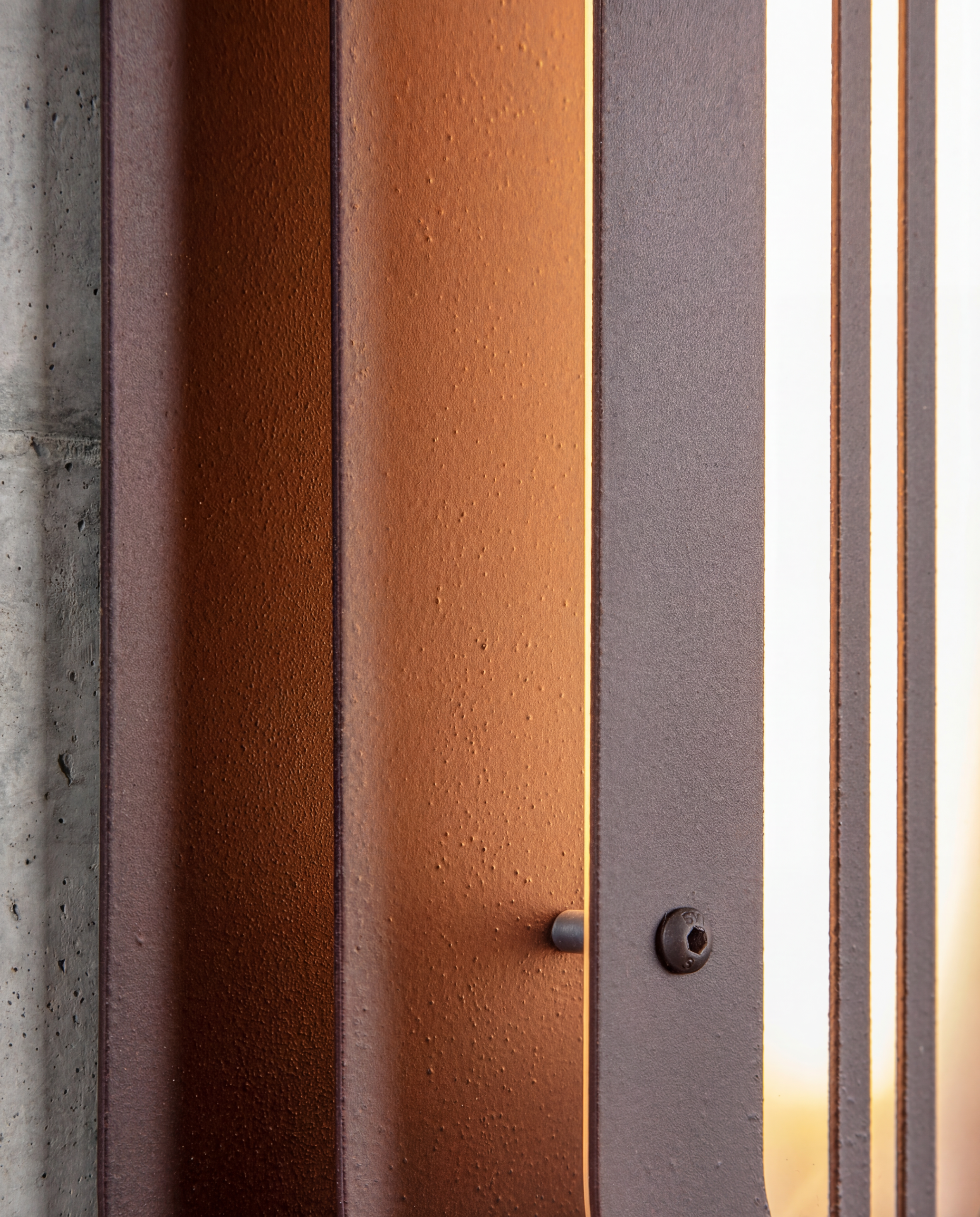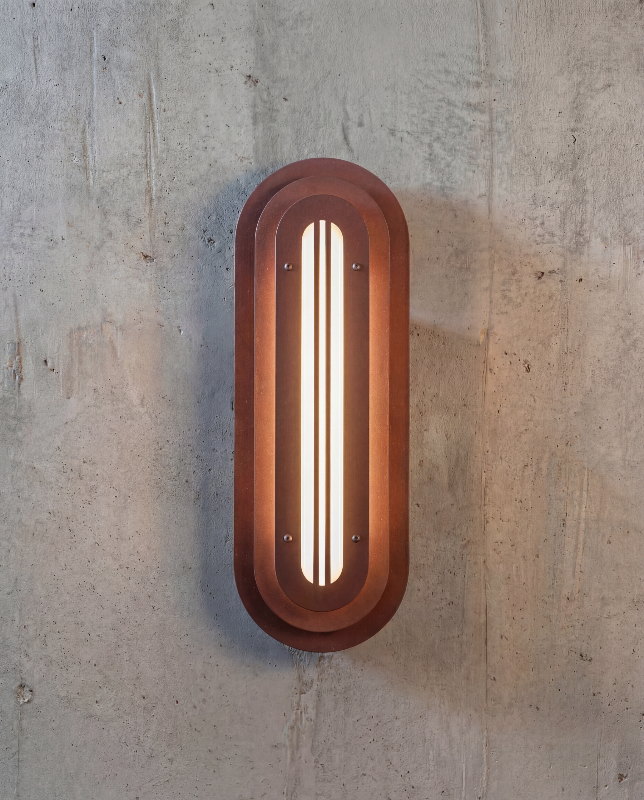 A long, rounded form built in quiet layers—soft geometry with a precise, architectural rhythm. The Mild Rust finish brings a restrained patina to the surface: subtle oxidation, gentle stains, and tonal shifts that feel warm and calm rather than dramatic. It’s industrial materiality in a softer register—tactile, honest, and quietly refined.