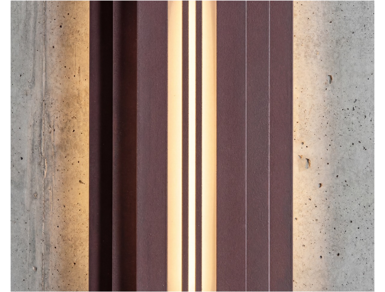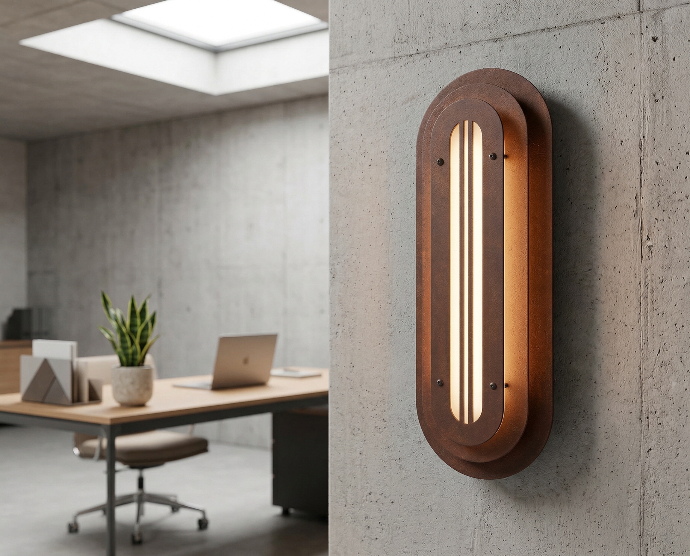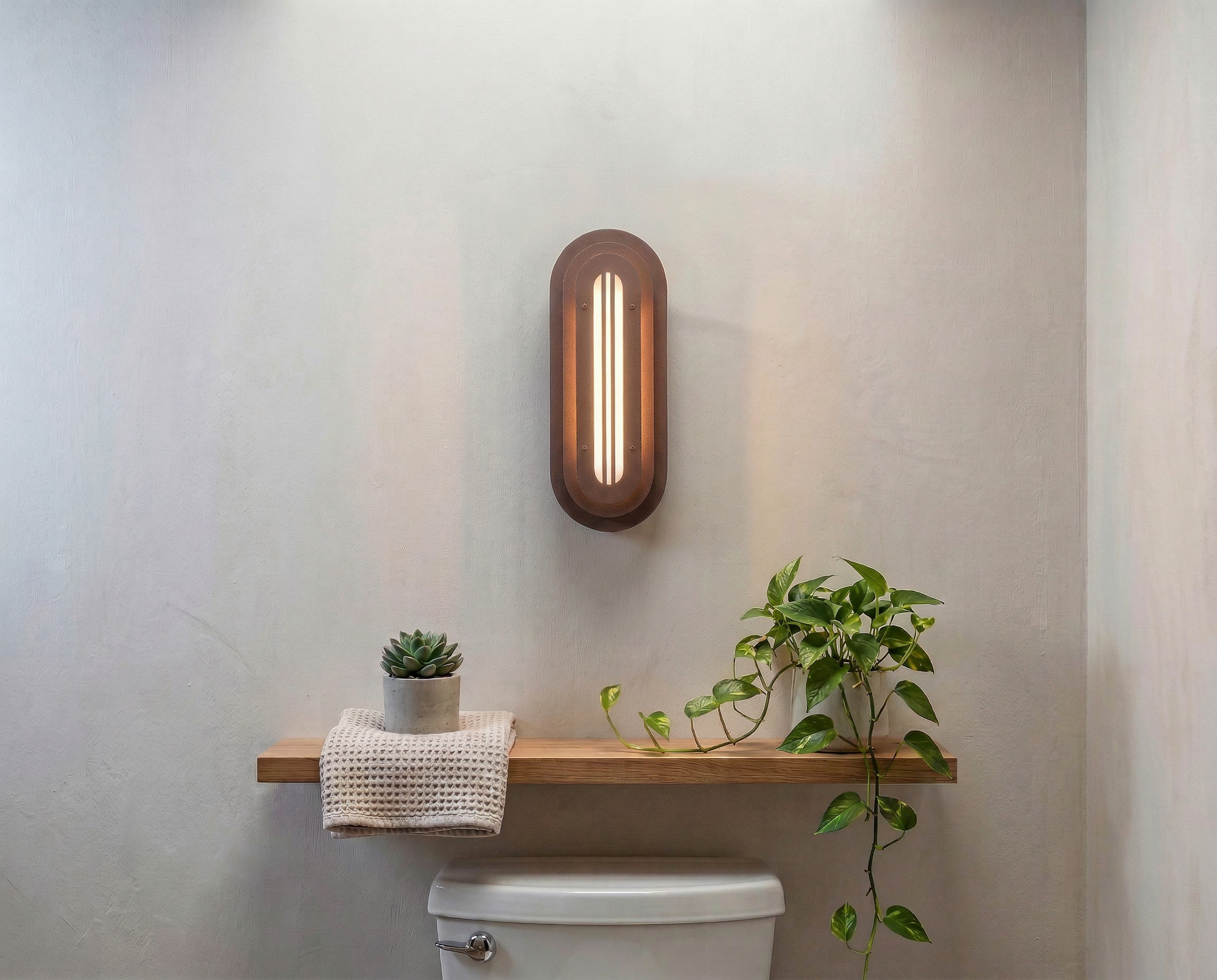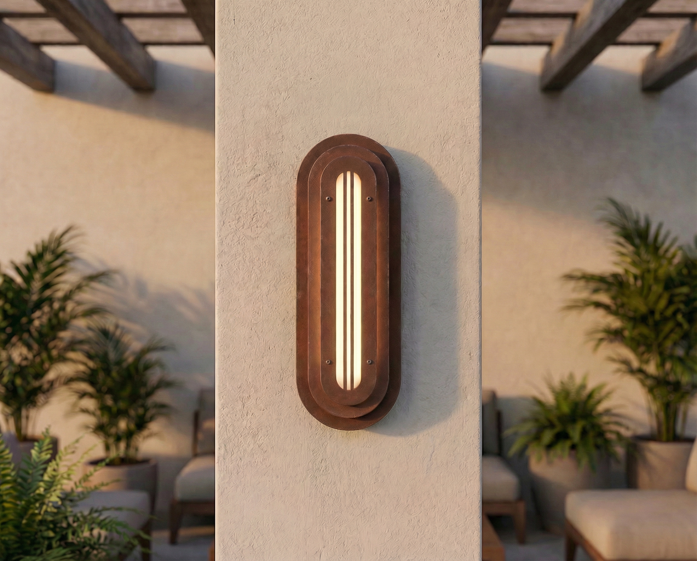 A long, rounded form built in quiet layers—soft geometry with a precise, architectural rhythm. The Mild Rust finish brings a restrained patina to the surface: subtle oxidation, gentle stains, and tonal shifts that feel warm and calm rather than dramatic. It’s industrial materiality in a softer register—tactile, honest, and quietly refined.