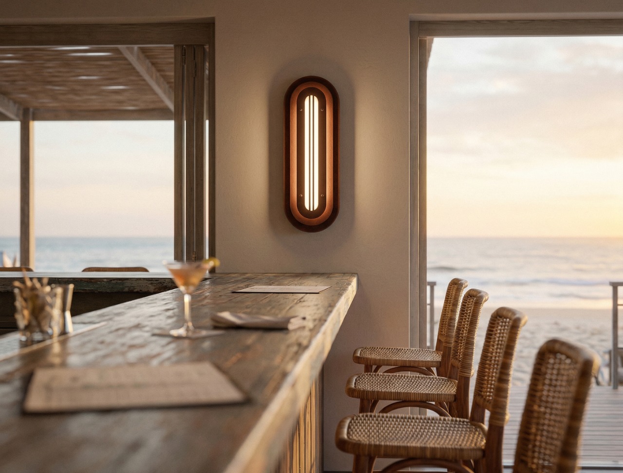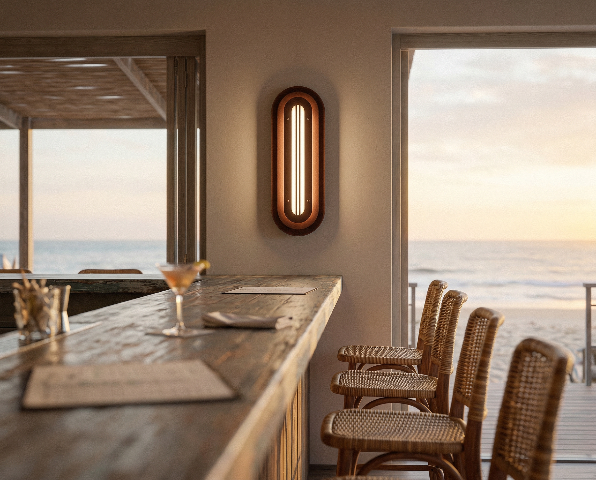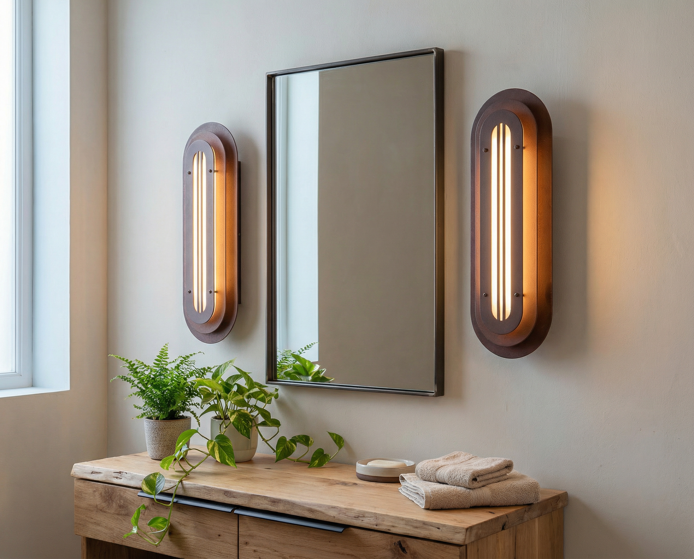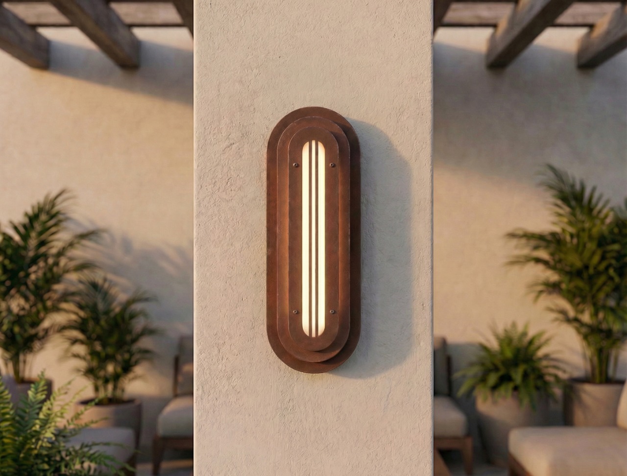A long, rounded form built in quiet layers—soft geometry with a precise, architectural rhythm. The Mild Rust finish brings a restrained patina to the surface: subtle oxidation, gentle stains, and tonal shifts that feel warm and calm rather than dramatic. It’s industrial materiality in a softer register—tactile, honest, and quietly refined.