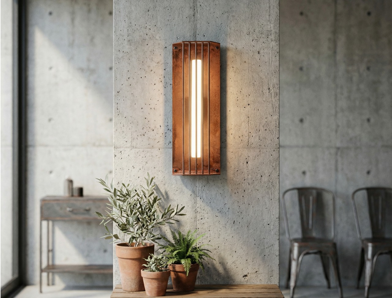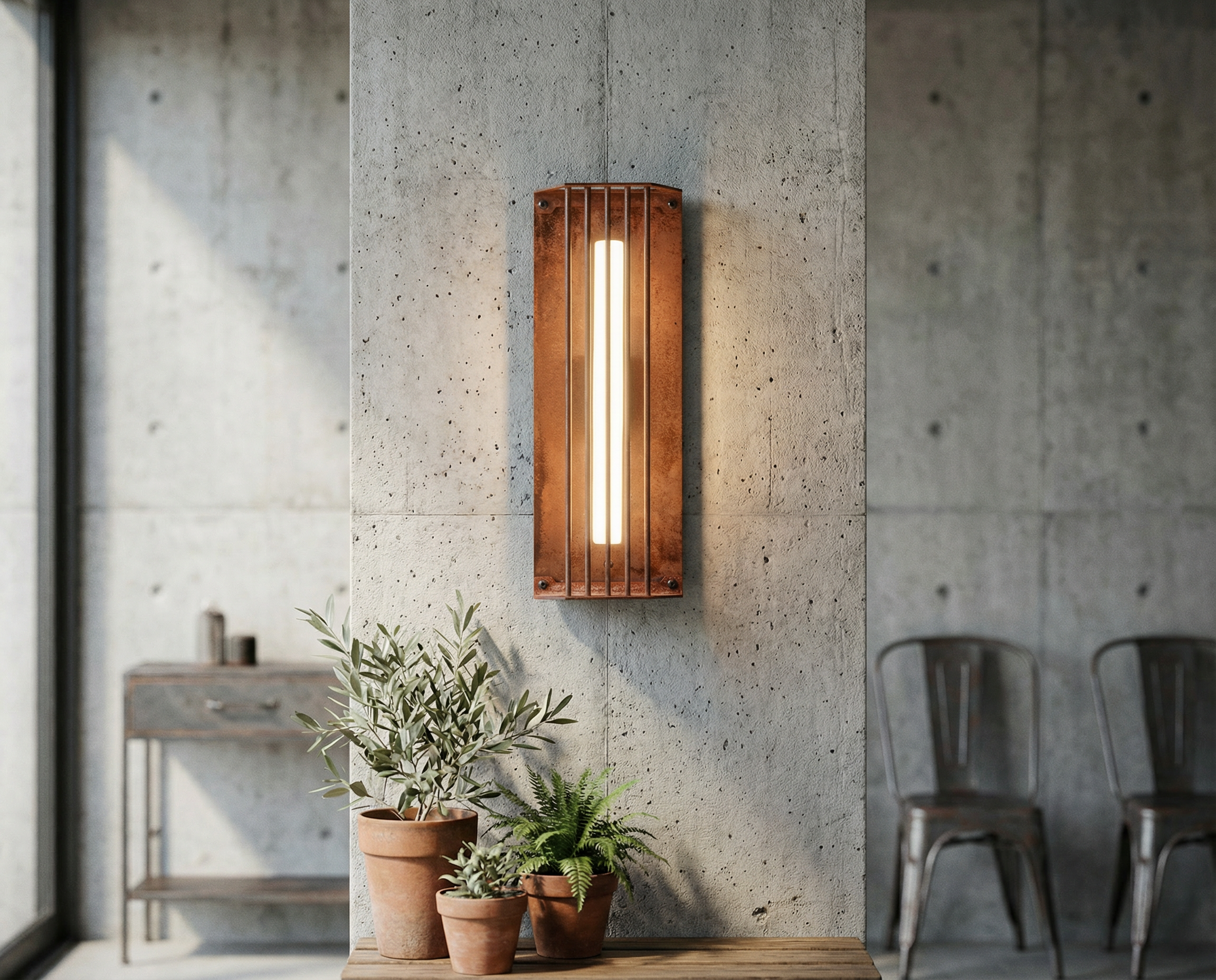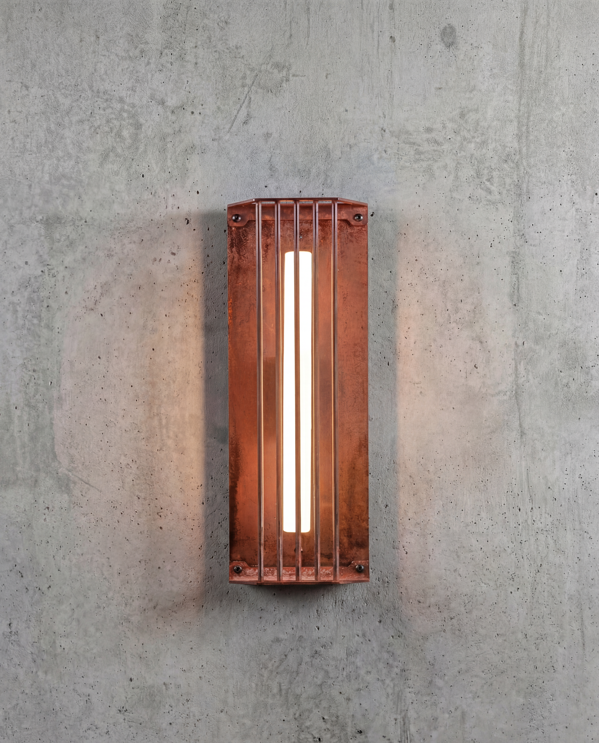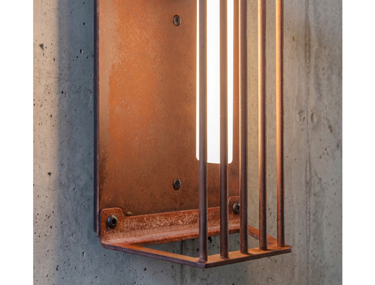 Wild rust drifts across it like weather: warm, irregular, intimate. It gathers in stains and shadows, softening the geometry without ever blurring it. No two surfaces repeat; each one carries its own time, its own touch, its own delicate scars.