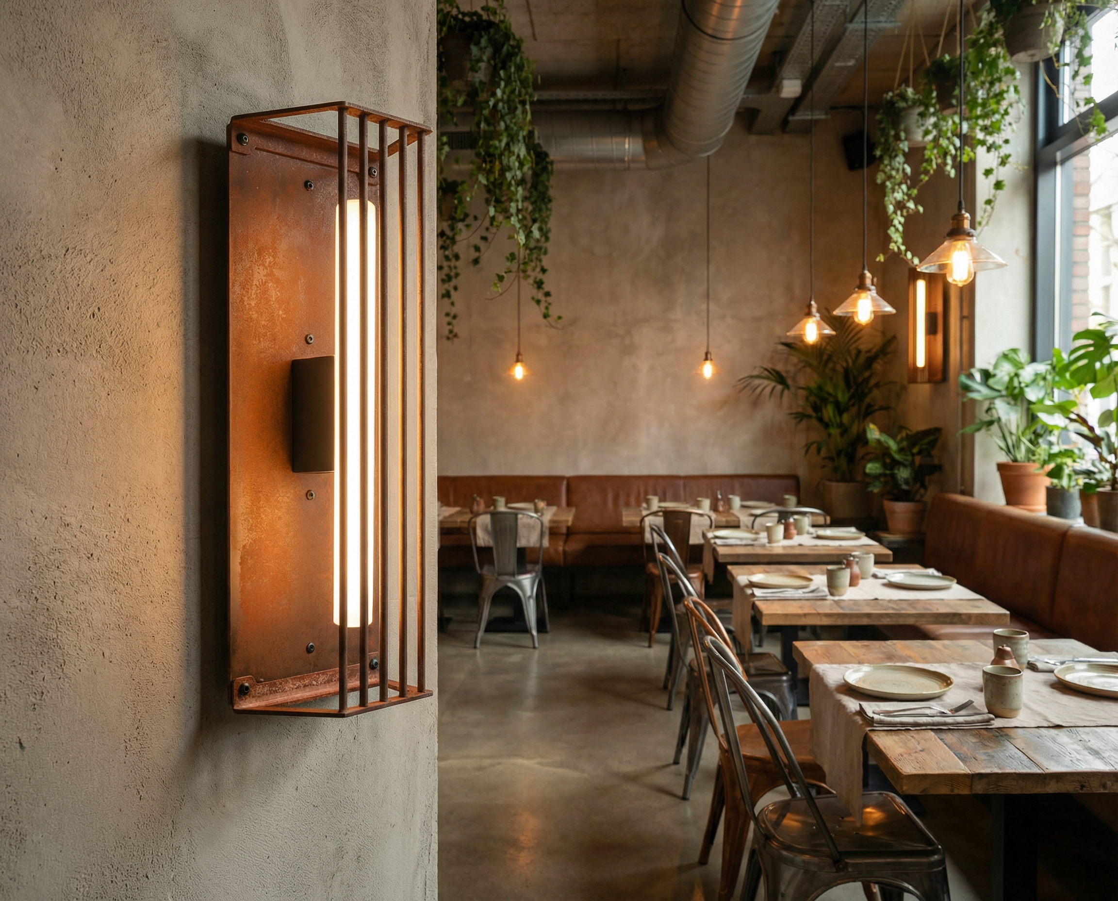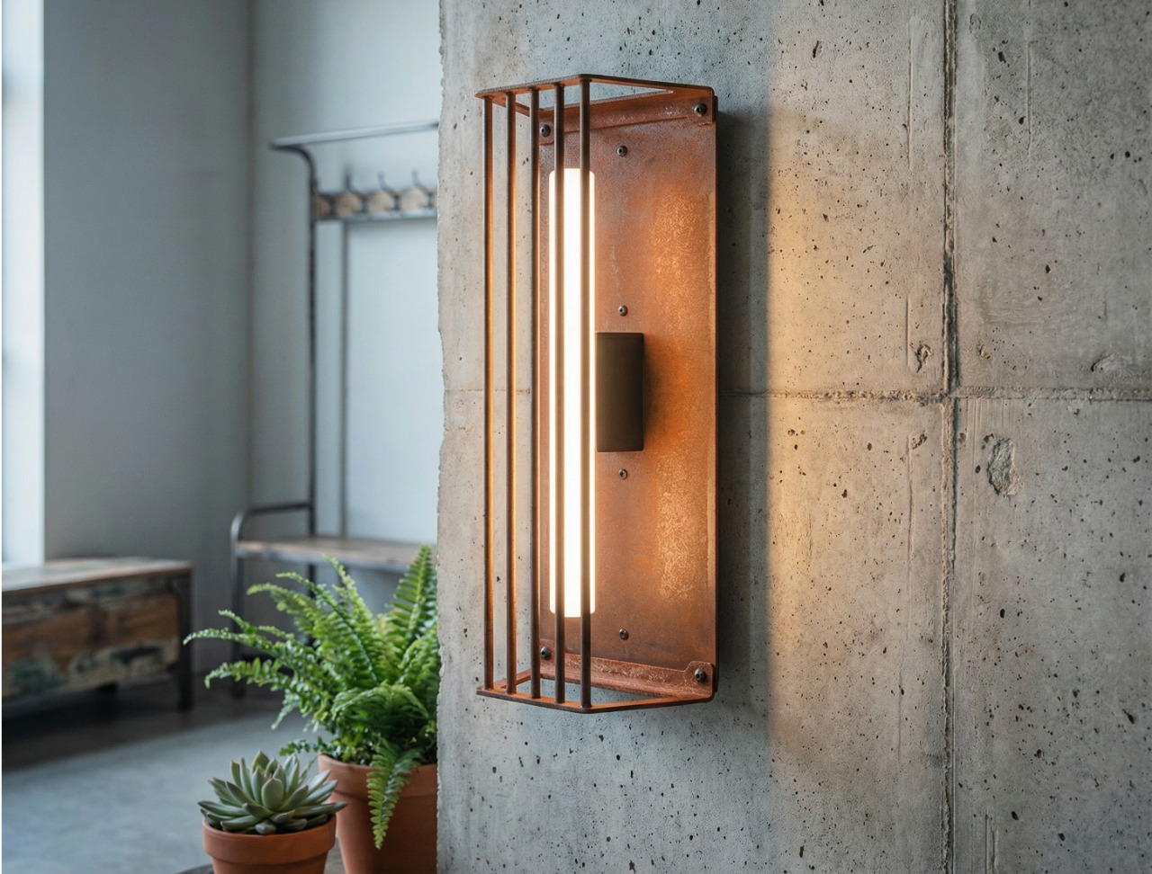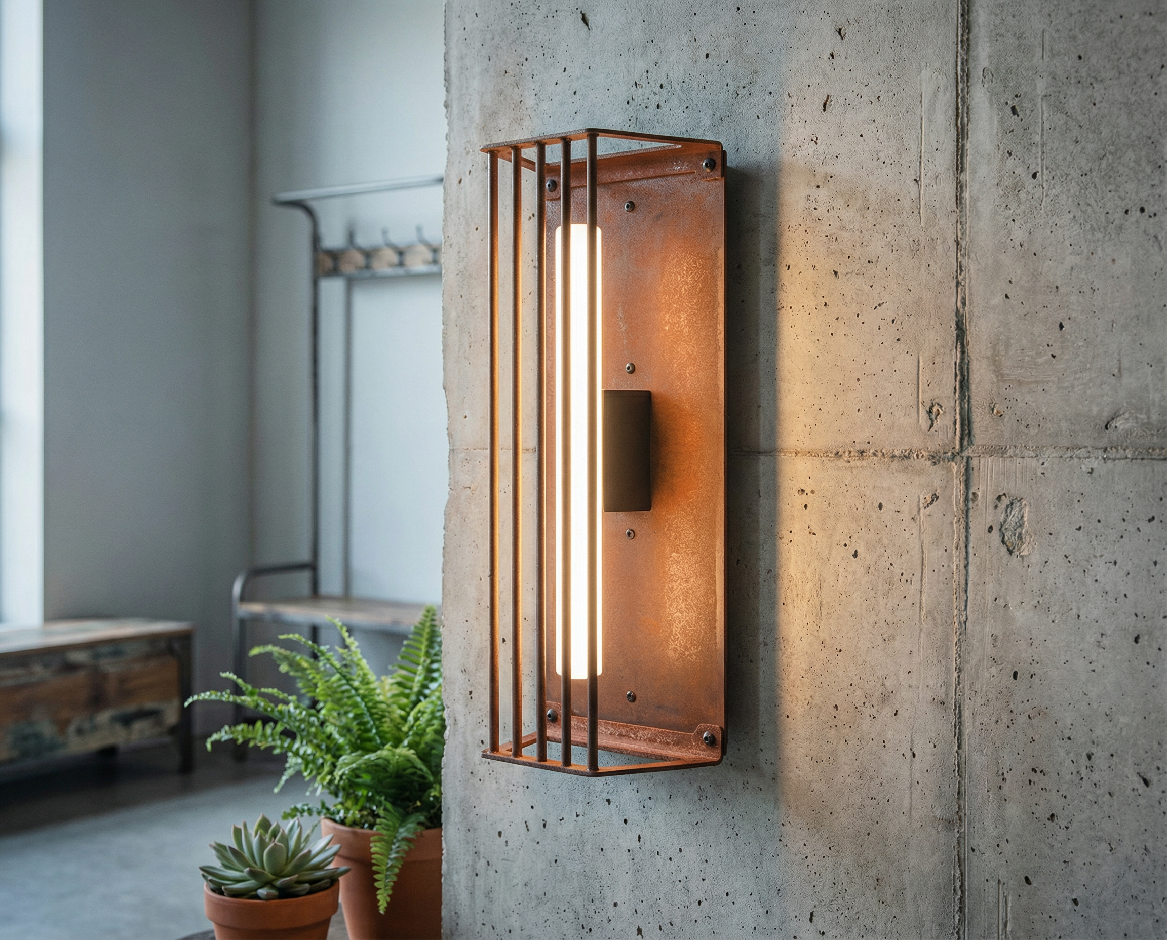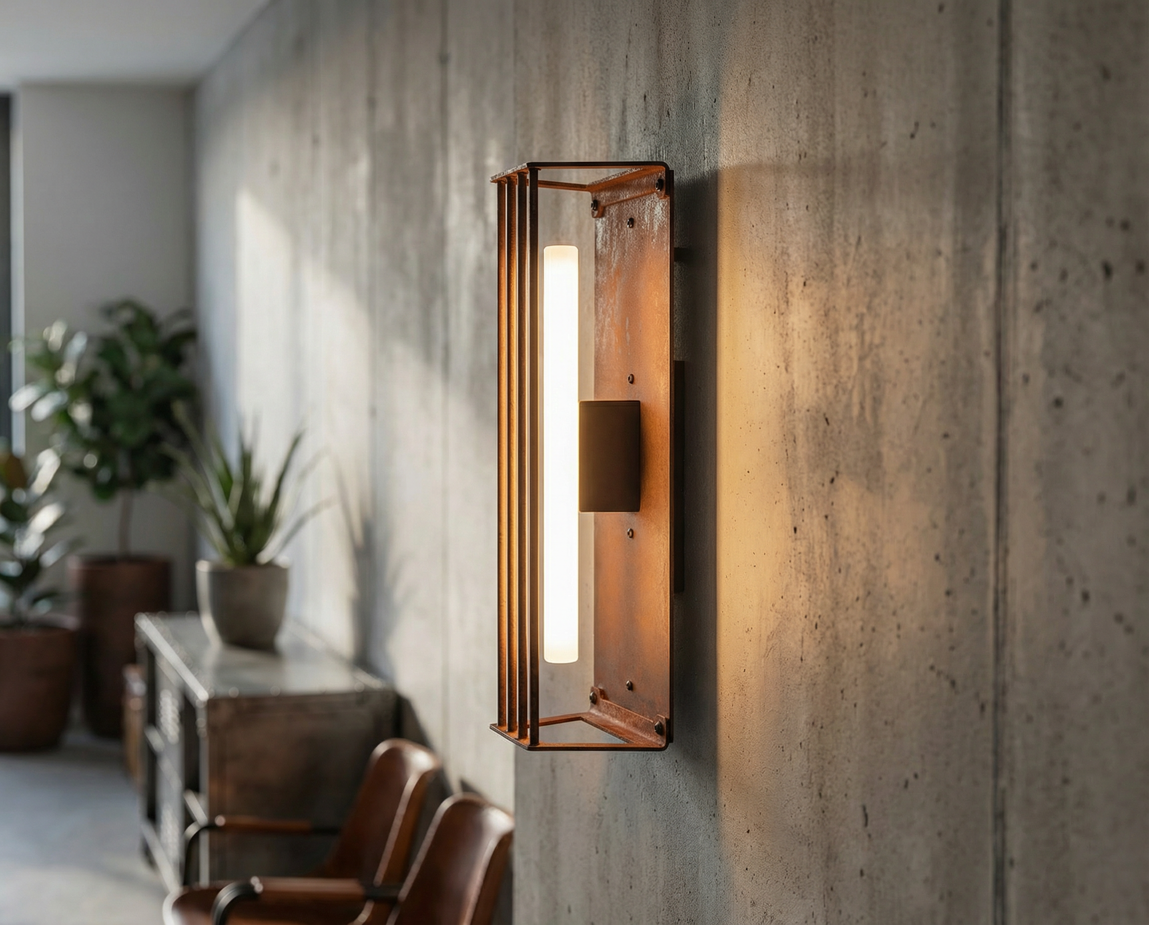 Wild rust drifts across it like weather: warm, irregular, intimate. It gathers in stains and shadows, softening the geometry without ever blurring it. No two surfaces repeat; each one carries its own time, its own touch, its own delicate scars.