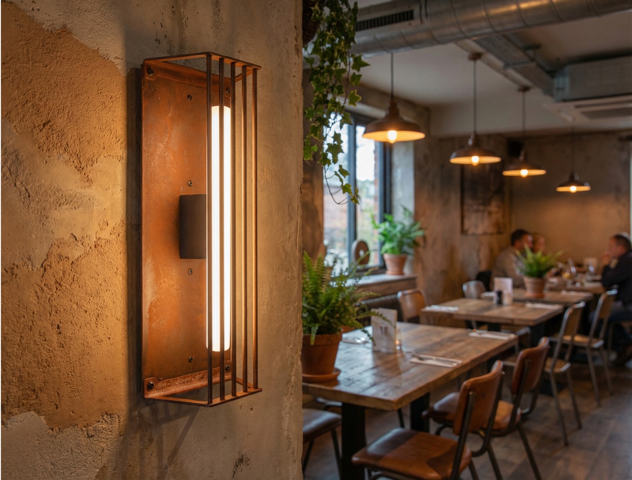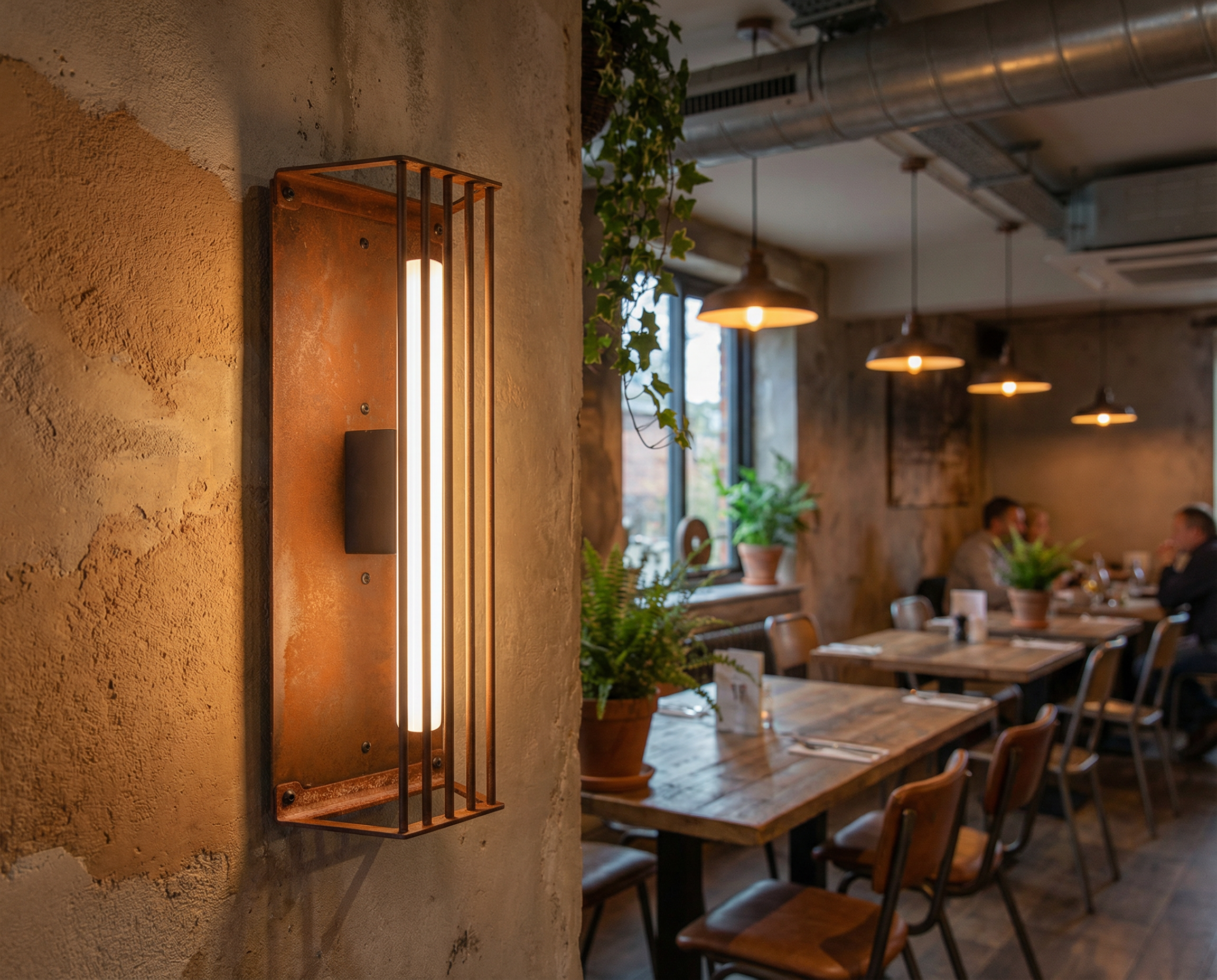 A tall, restrained silhouette—steel held in a quiet rhythm of lines, a form that feels both guarded and open.