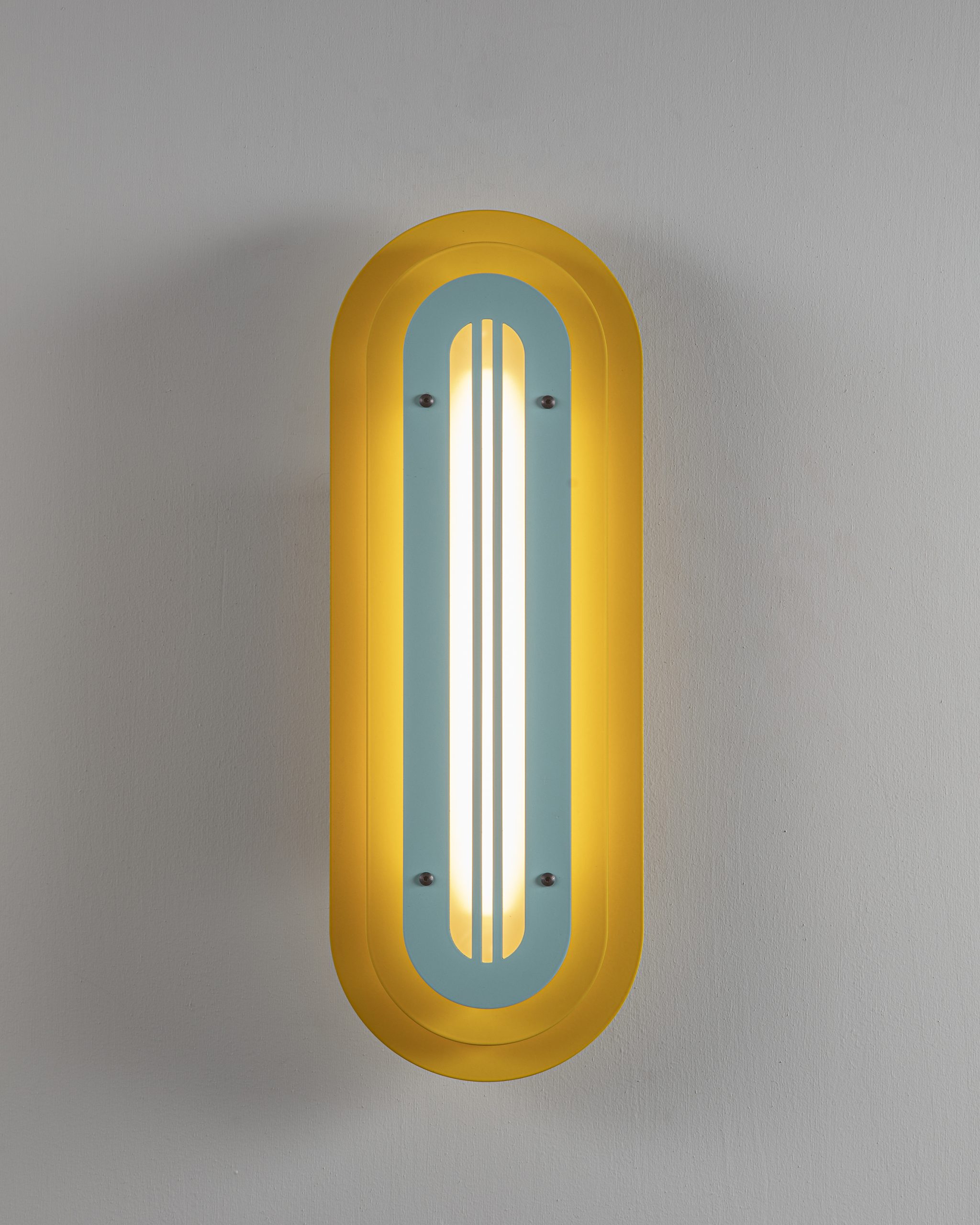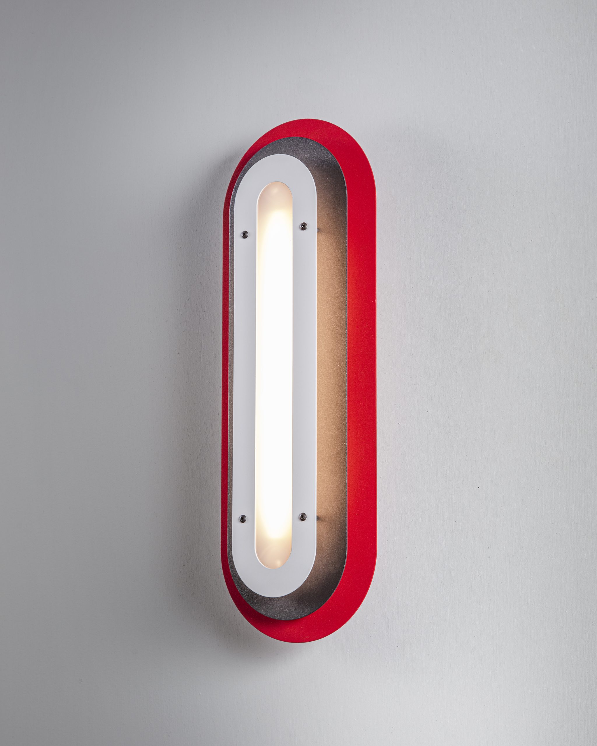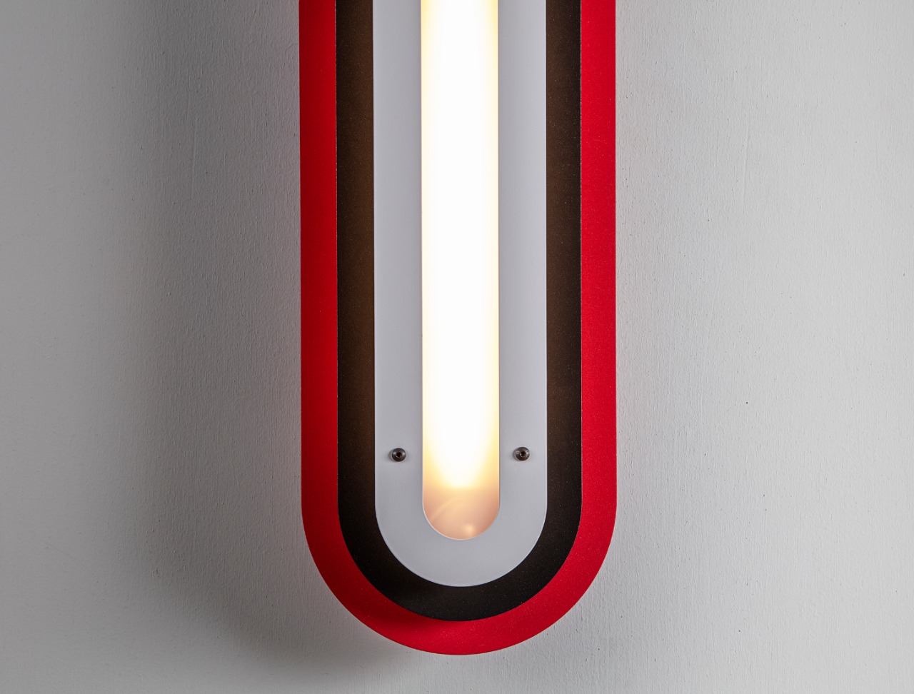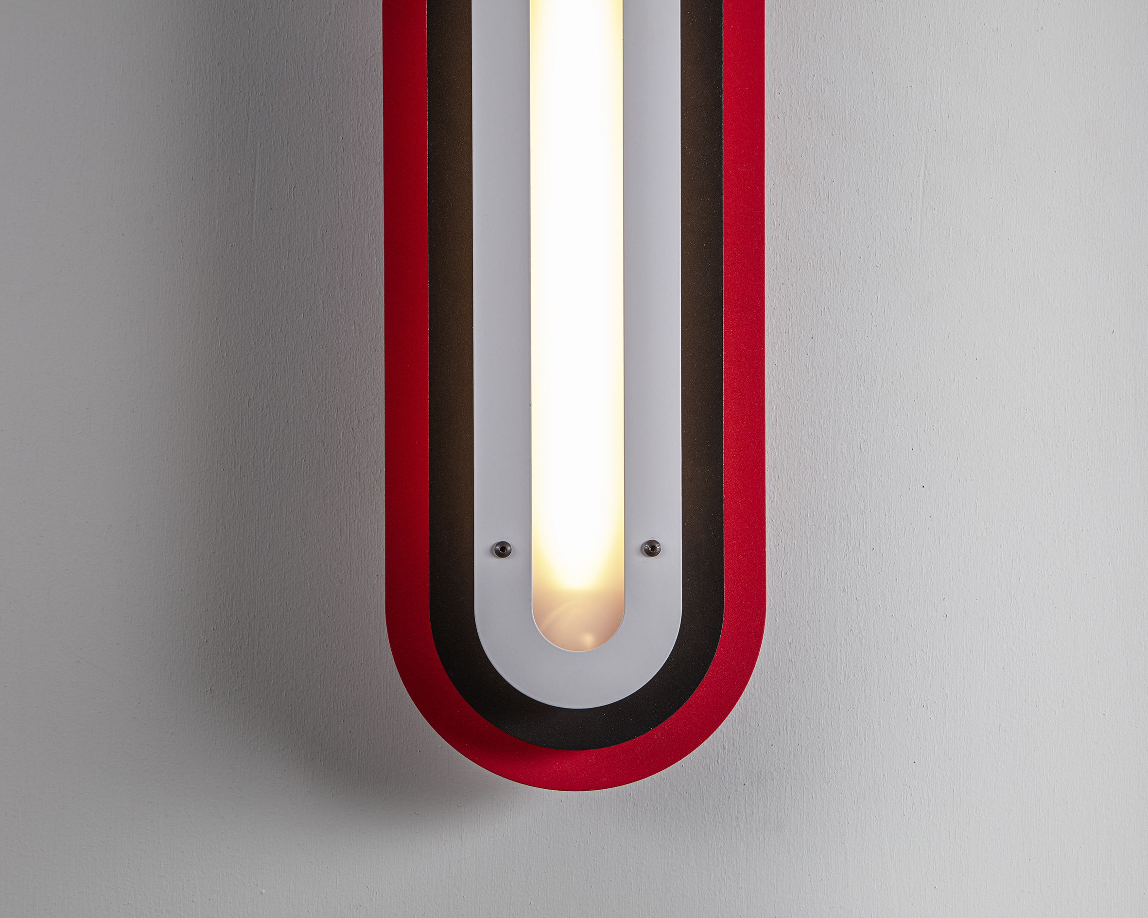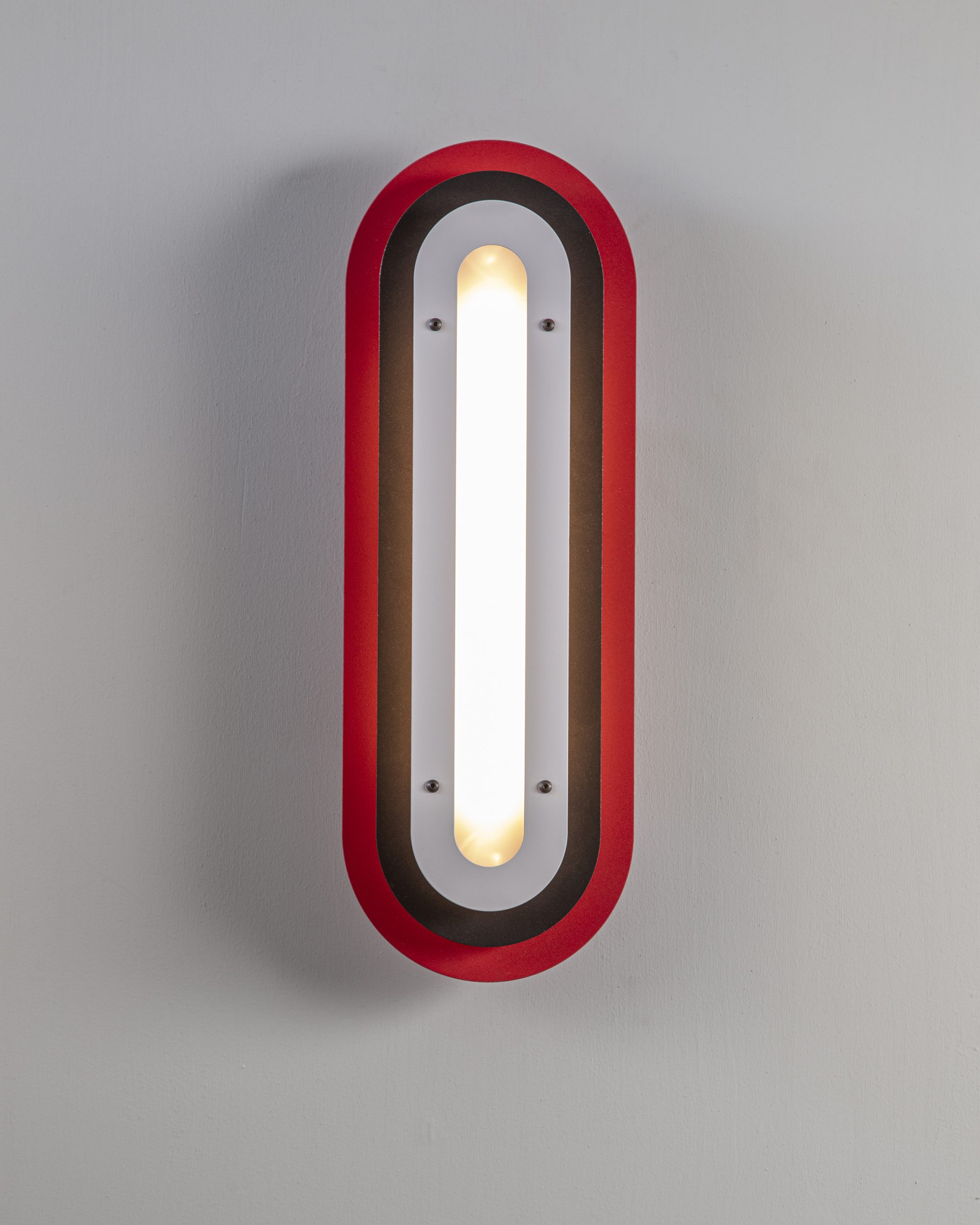 Layered silhouettes and soft radiuses create a graphic presence on the wall, while the warm core light adds depth and gentle shadows