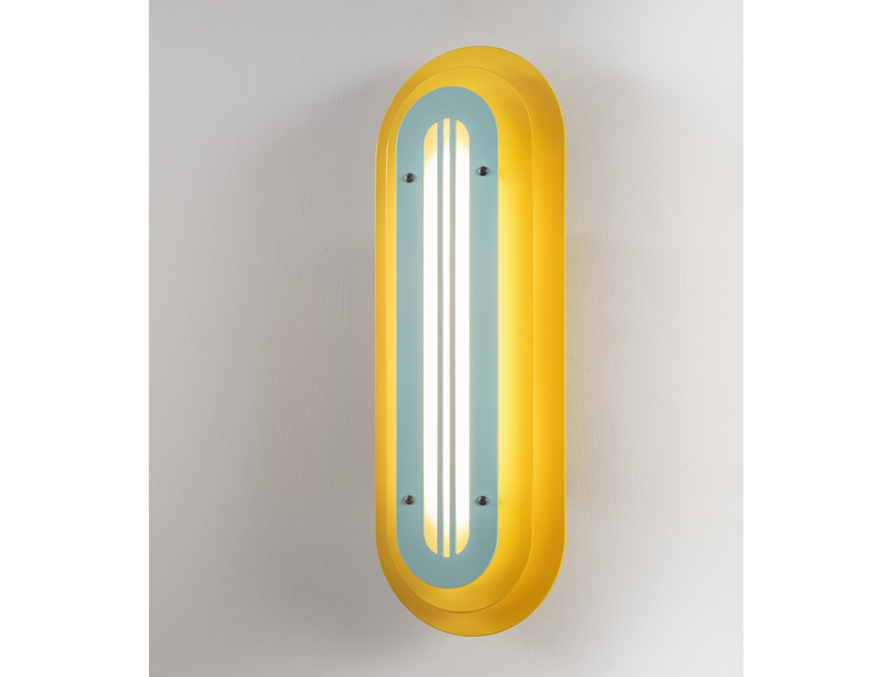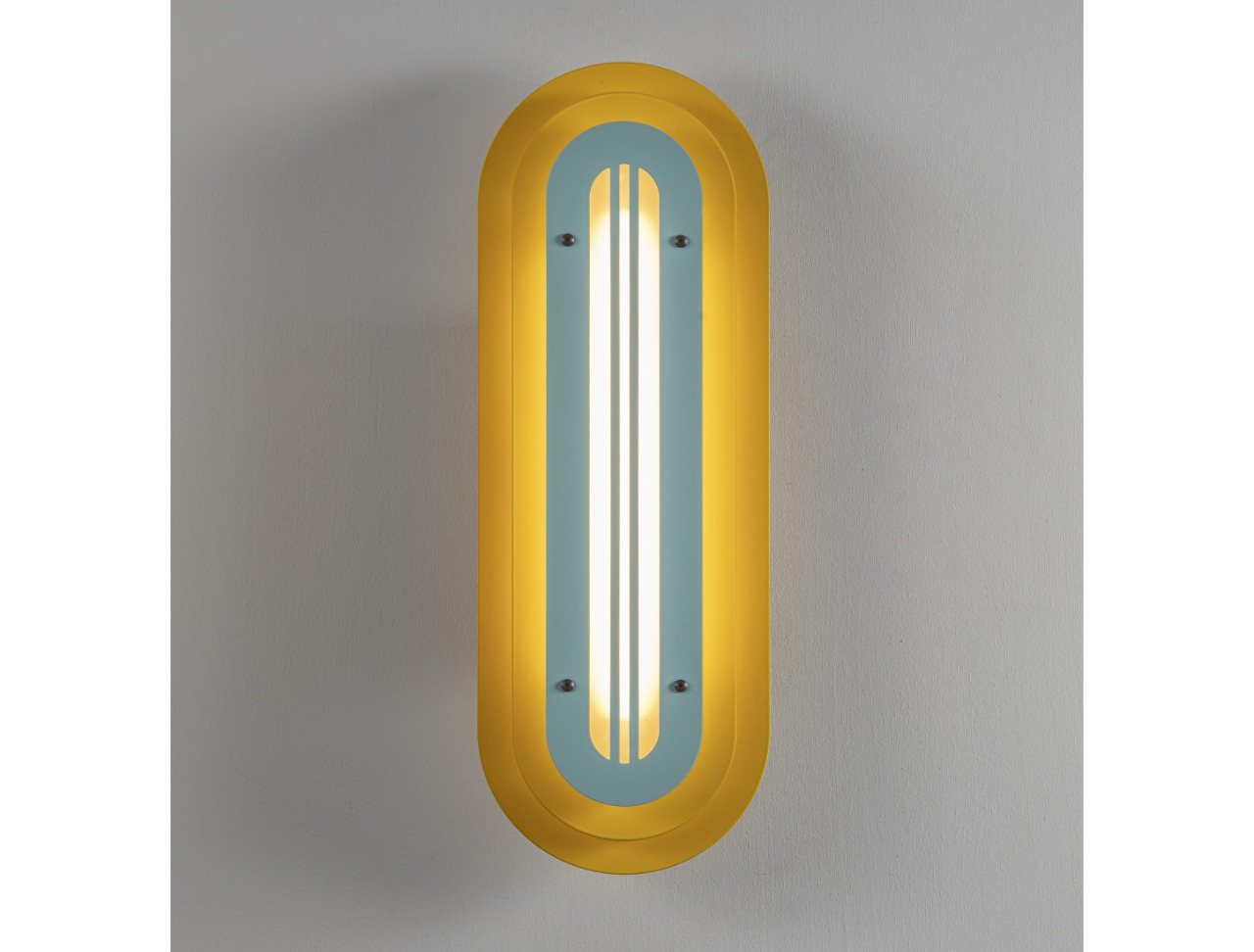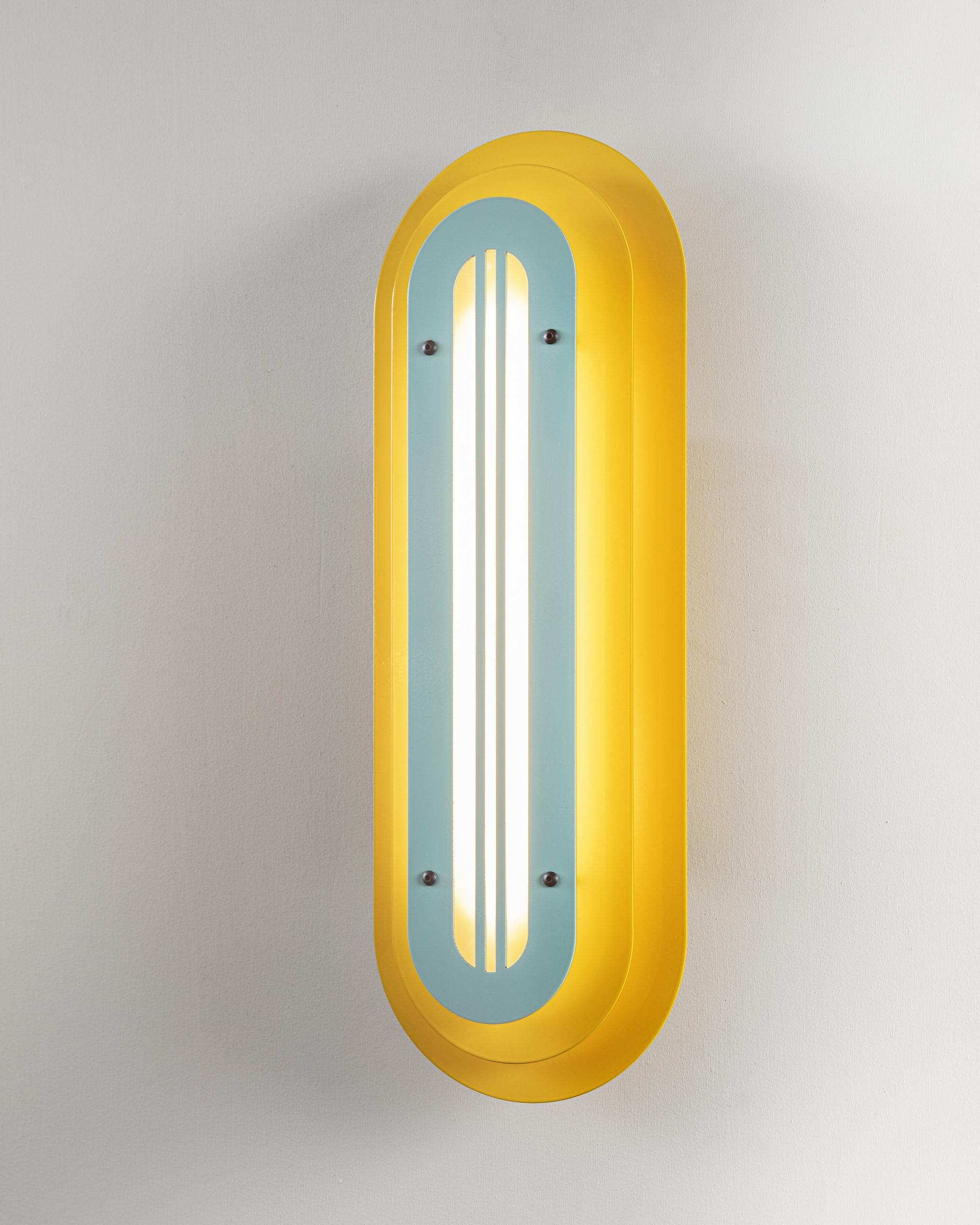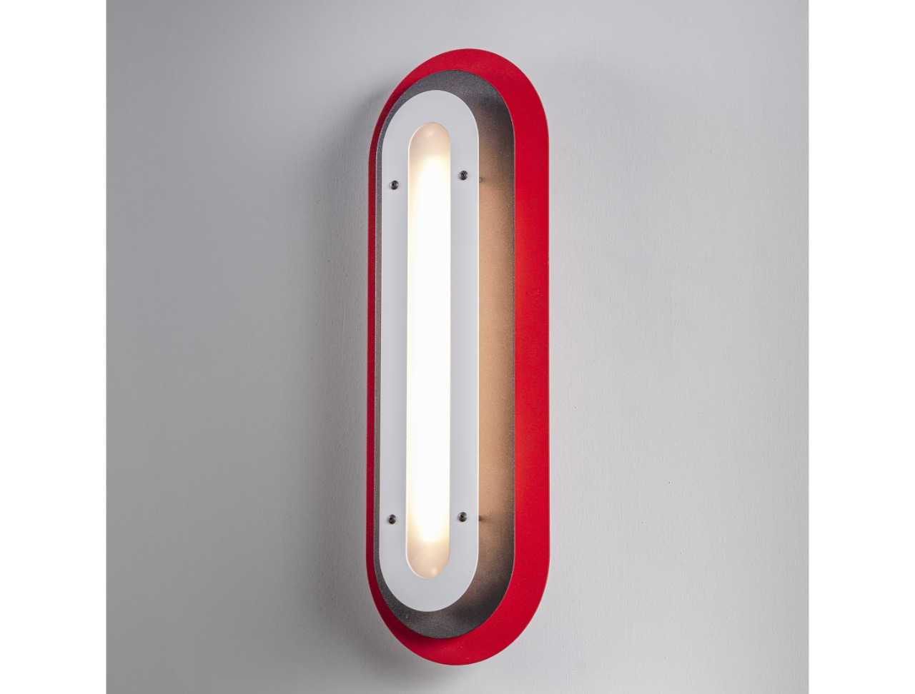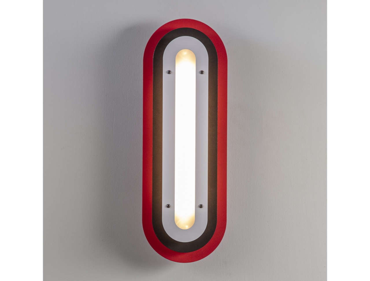 Layered silhouettes and soft radiuses create a graphic presence on the wall, while the warm core light adds depth and gentle shadows